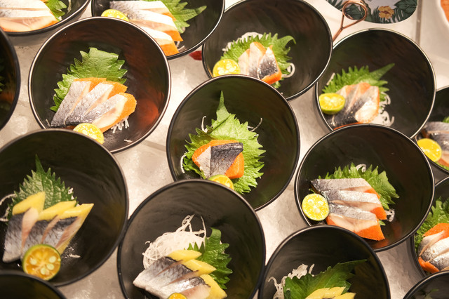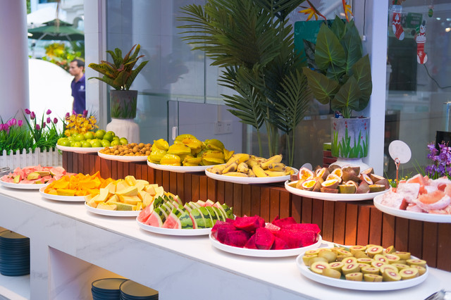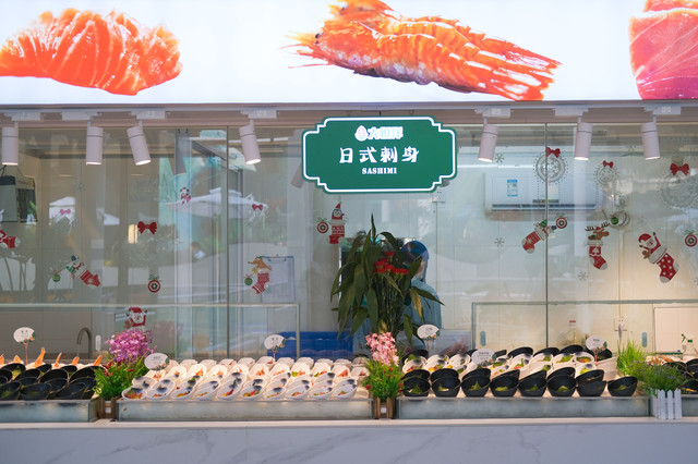 上百种菜品任意吃。菜品的种类太多了,停不下来的拿拿拿。千万不要怕会迷路,因为餐厅分好了区域~有海鲜、烧烤、热菜、刺身、寿司料、甜点、水果等等。