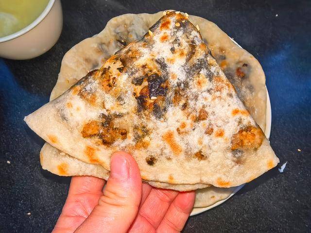 煎烤技巧:小火慢煎是关键,避免外皮焦糊而内部未熟;若用干烙法,可在饼上刷少许水,防止干裂。