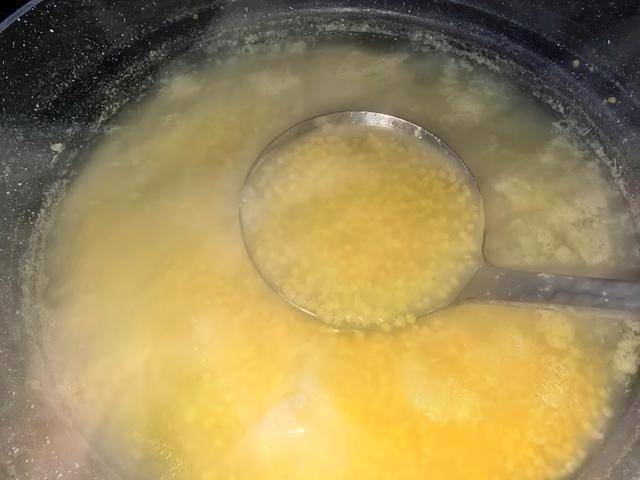 烙饼的同时,我顺便煮了红薯小米粥,小米粥对于脾胃不好的孩子特别友好,红薯润肠通便,而且加了红薯,小米粥喝起来清甜开胃,孩子也爱喝。