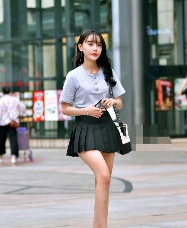 黑色百褶裙的妹子真是好身姿喔 !