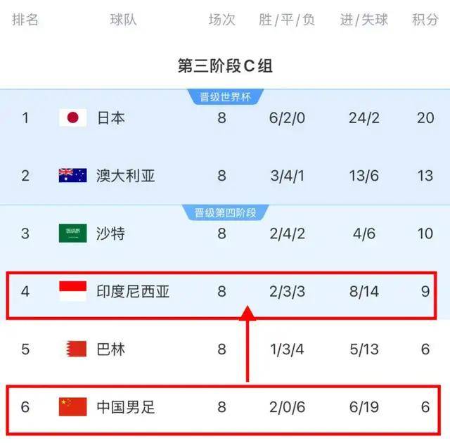 上轮主场0-2完败澳大利亚后,舆论普遍认为国足已到悬崖边缘。但要仔细看积分形势却出现微妙变化:若国足能在印尼身上全取3分,积分将达9分;末轮即便没能取胜,只是逼平巴林,总分也将来到10分。此时戏剧性一幕出现——印尼最后一轮要客场挑战日本,以蓝武士的状态,印尼大概率吞下败仗,最终积分停留在9分。而巴林队即便主场爆冷逼平沙特,积分最多也只能到8分。这意味着,国足只需完成“1胜1平”的最低消费,就能反超印尼和巴林,以小组第四身份闯入附加赛!