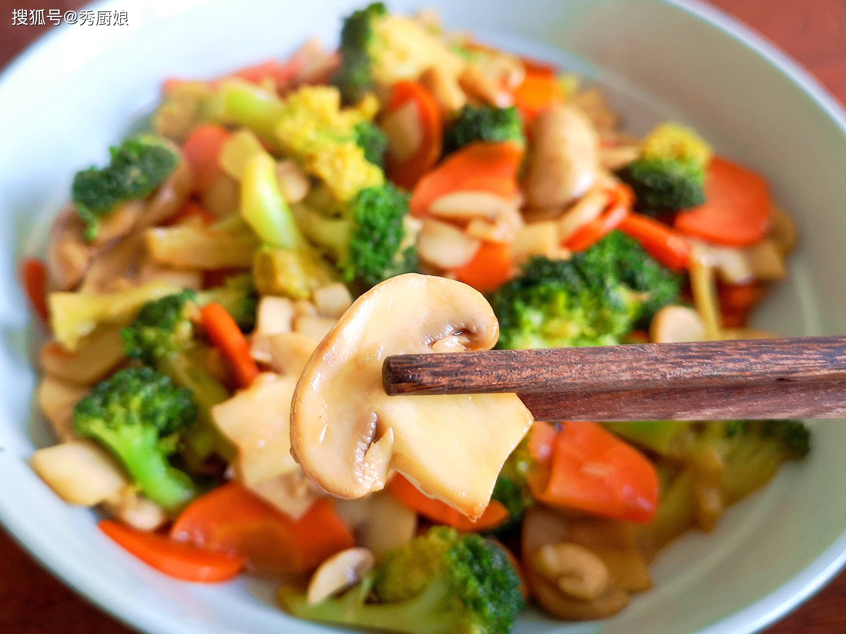 推荐食谱:西兰花胡萝卜炒口蘑