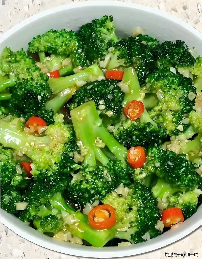 4、出锅前加入适量盐调味,撒上葱花即可。清炒西兰花