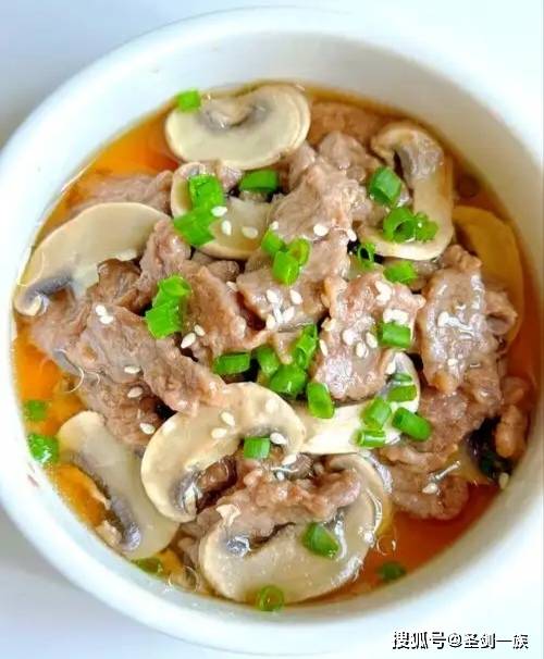8. 完成:捞出鱼骨和姜葱,汤成后可直接盛入碗中享用。口蘑蒸牛肉片