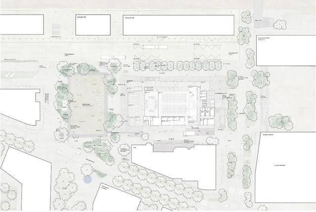 第三名方案来自 E2A Piet Eckert und Wim Eckert Architekten。该方案同样展现了一定的设计水平,可能在某些方面如环境融合、文化表达等方面有着突出的表现,为整个竞赛增添了更多的设计多样性。