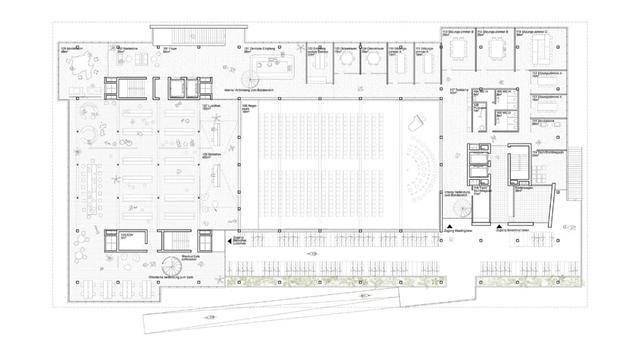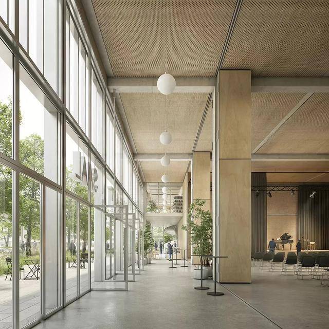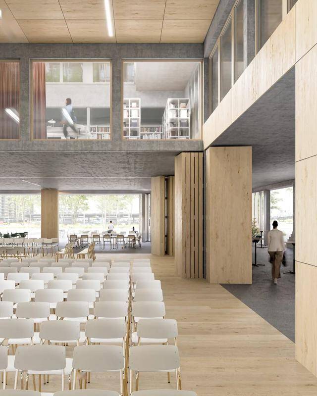 获胜提案由苏黎世 op-arch 公司提出,其底层设计独具匠心。底层为各种规模的活动提供了充足的空间,宽敞的门厅是人员聚集与交流的重要区域。更为突出的是,室内外空间实现了灵活连接,并向多夫马特广场开放。这种设计打破了传统建筑室内外空间的界限,使得活动可以在更广阔的范围内开展。例如,在举办大型社区活动时,室内可以作为主要的展示或表演区域,而室外广场则可以作为观众休息、交流以及开展一些互动性活动的场所,极大地增强了活动的多样性和参与度。