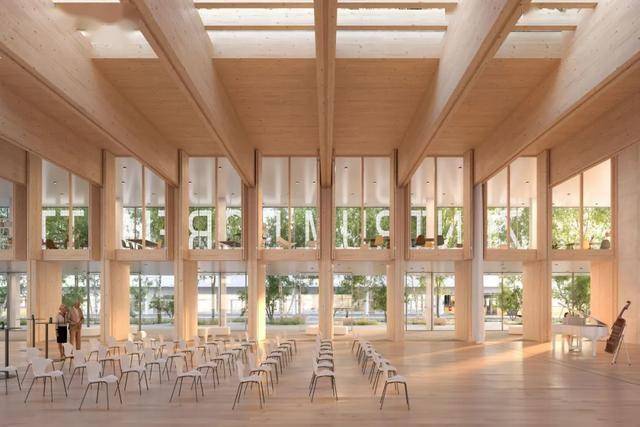 现代化的市政管理部门办公楼位于二层,精心设计的空间结构简化了内部的行政流程。合理的空间布局使得各个部门之间的协作更加便捷,提高了行政效率。一层中央开放式接待区将成为公众新的联络点,方便居民咨询和办理事务;大楼还设有服务区,为居民提供一站式的服务。此外,大楼东侧的中心位置将建造约 60 套公寓,以满足不同目标群体的需求。这些公寓的规划考虑了不同家庭结构和经济水平的居民,为他们提供了舒适的居住环境。