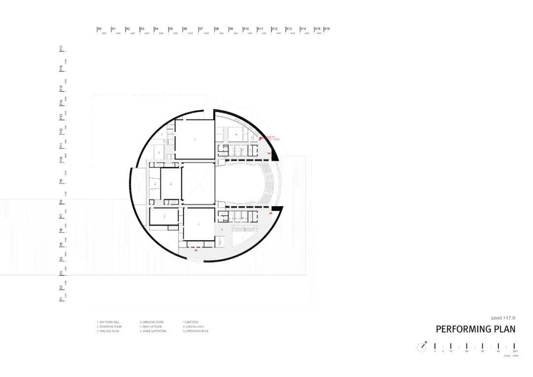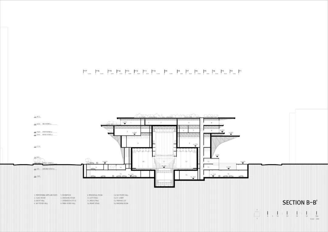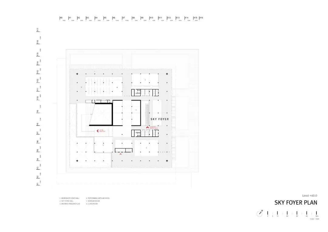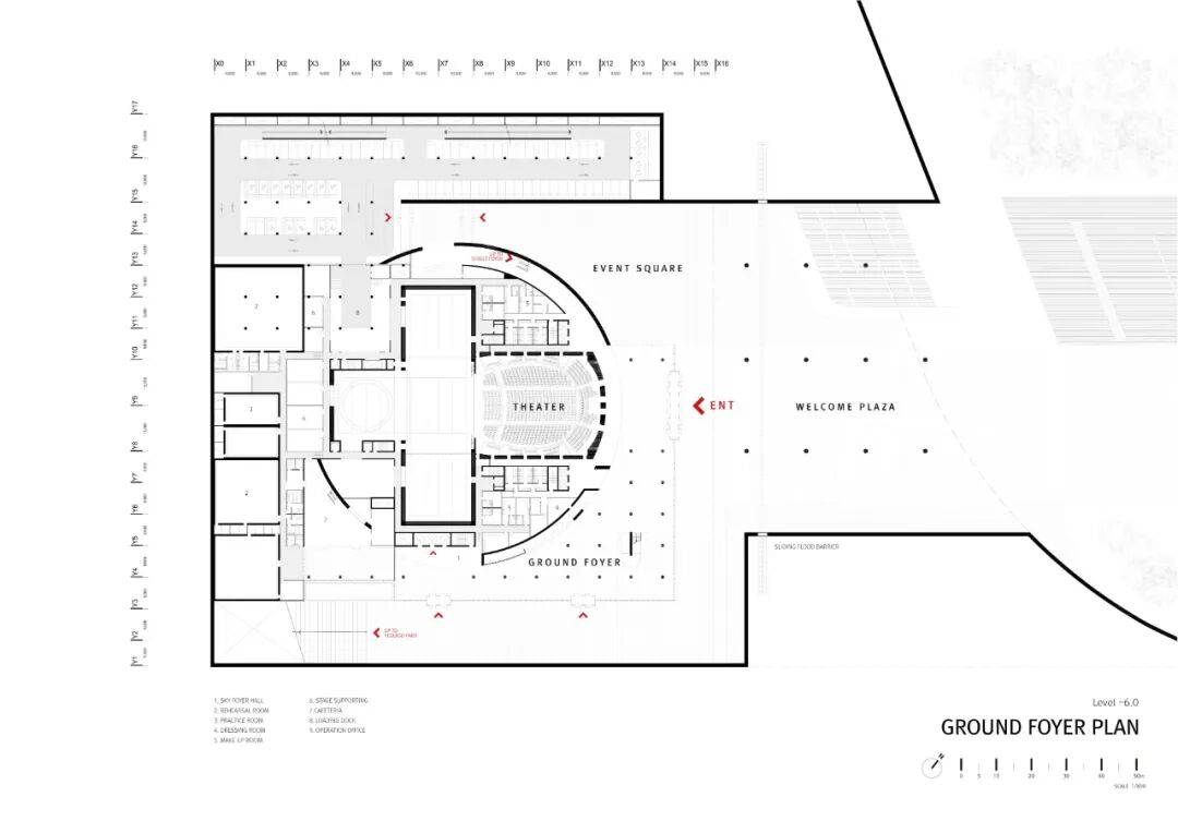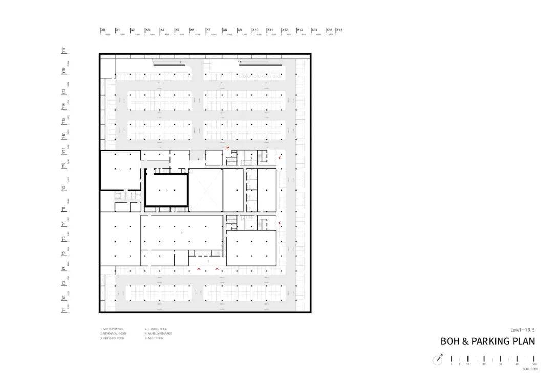 第二世宗文化中心总建筑面积约66,000 平方米,包含一个大型表演厅(1,800 个座位)、一个中型表演厅(800 个座位)、一个展览厅(5,670 平方米)以及一个公共观景台。项目不仅作为文化表演场馆,更注重与汝矣岛公园和汉江滨水区的有机融合,成为集文化、休闲与公共活动于一体的城市公共艺术中心。