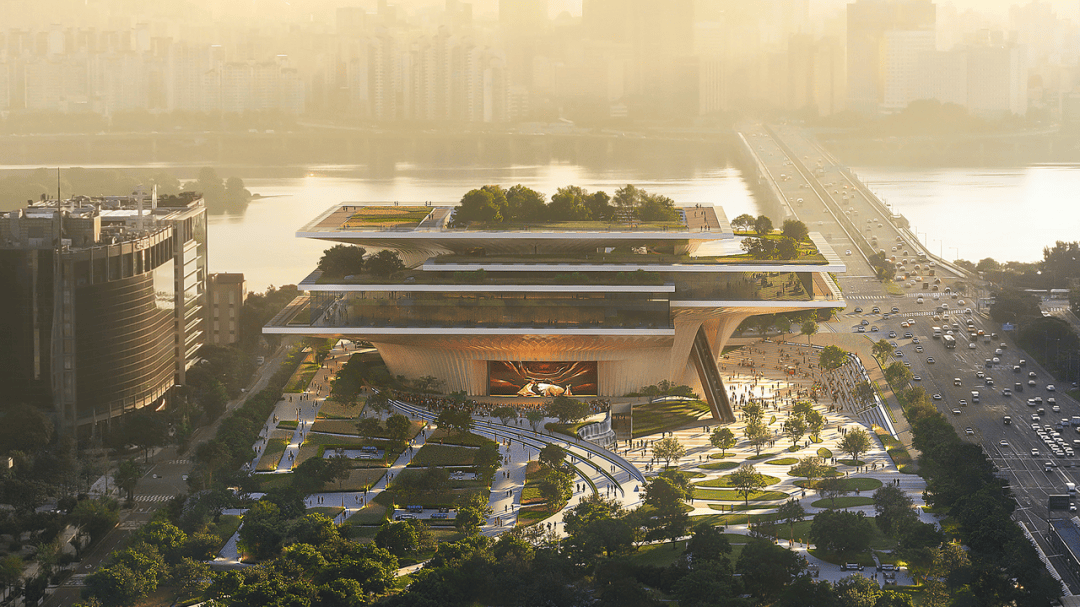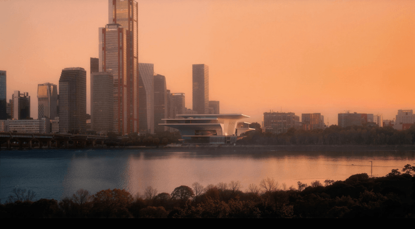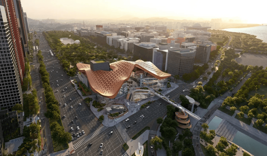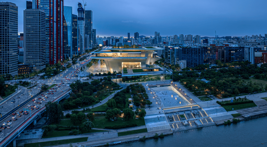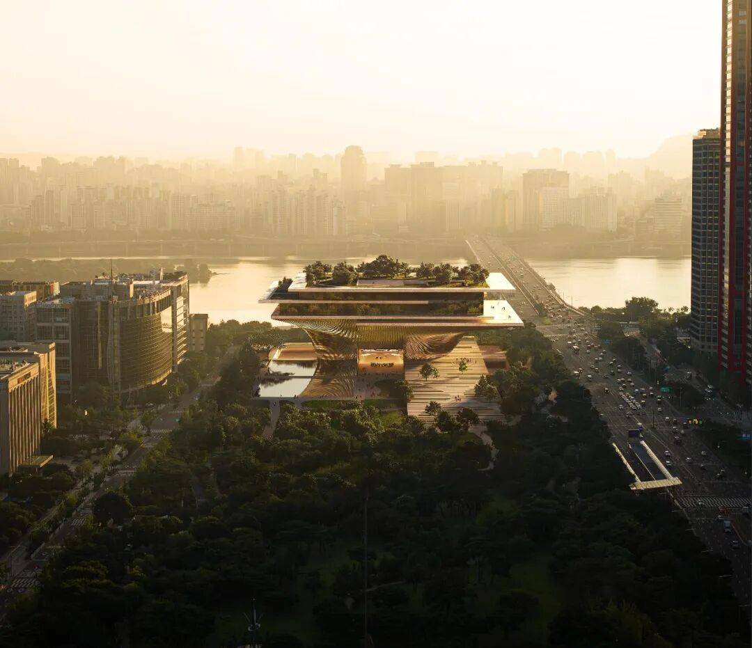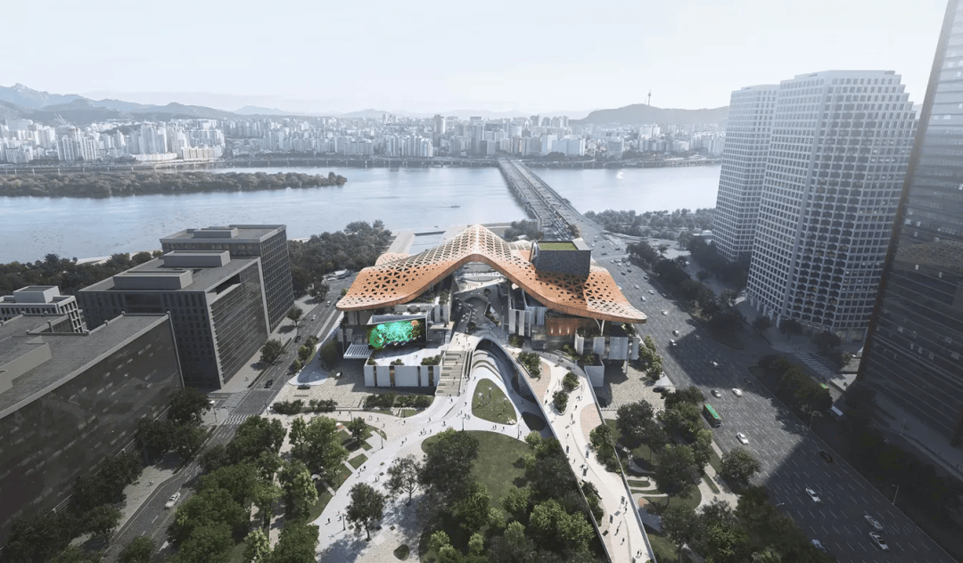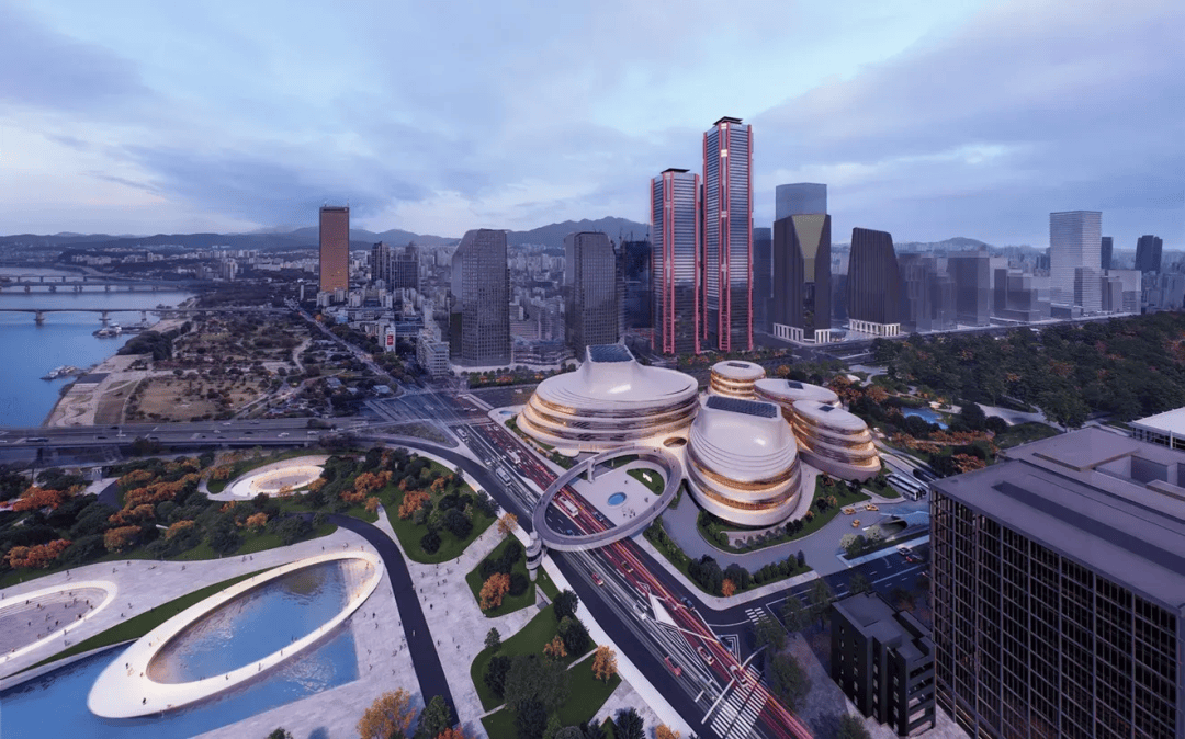 该项目作为“大汉江工程”的核心部分,完美契合首尔对汉江流域“恢复自然、人水和谐”的治理理念。其选址首尔汝矣岛公园北侧,不只是单纯建设文化场馆,而是规划了滨水文化公园、生态公园等多种空间,将文化功能与汉江生态休闲场景深度绑定,既延续光化门世宗文化中心的城市文化服务职能,还致力于成为汉江沿岸的世界级文化地标,助力首尔打造兼具生态与人文气息的滨水城市风貌。