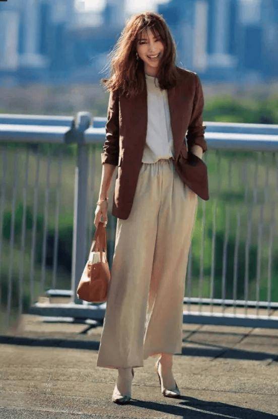 - 职场通勤:大地色西装+白色衬衫+蓝色牛仔裤,干练又不失亲和力。