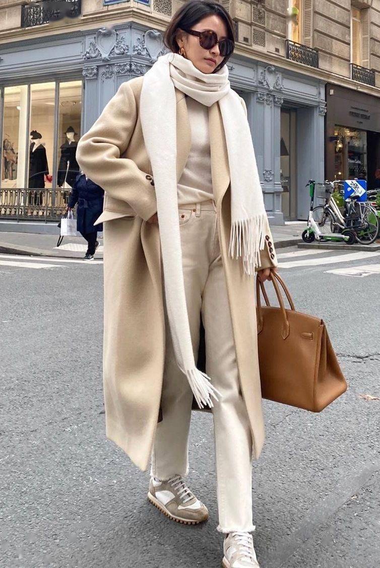 - 富家女风格:驼色大衣+全套白色内搭,解决冬日穿搭烦恼。