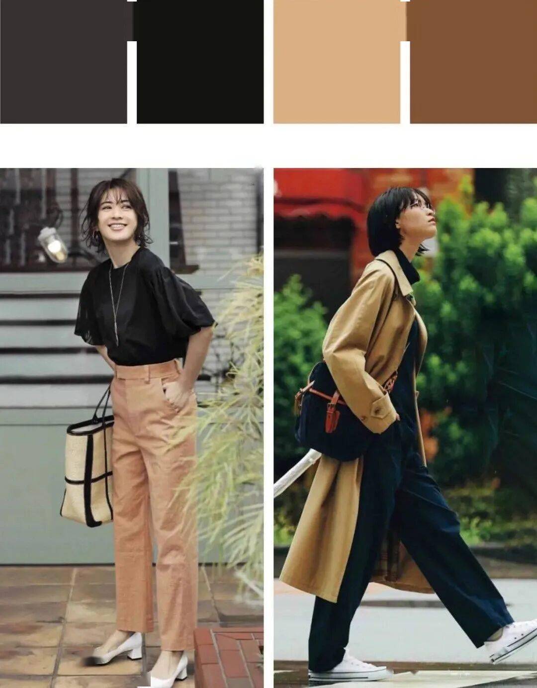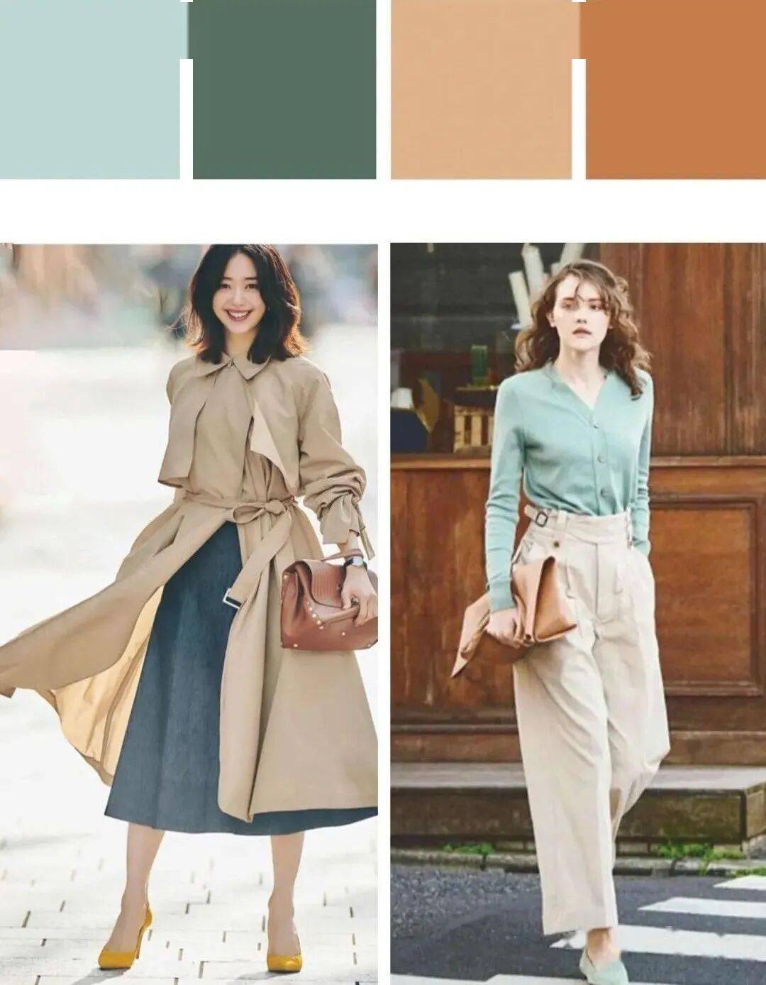 - 原理:同属大自然色系,低饱和度搭配视觉柔和,适合都市女性打造淡泊森系感。