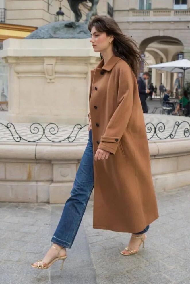 - 牛仔叠穿:牛仔裤/衬衫内搭大地色外套,中性风与优雅感并存。