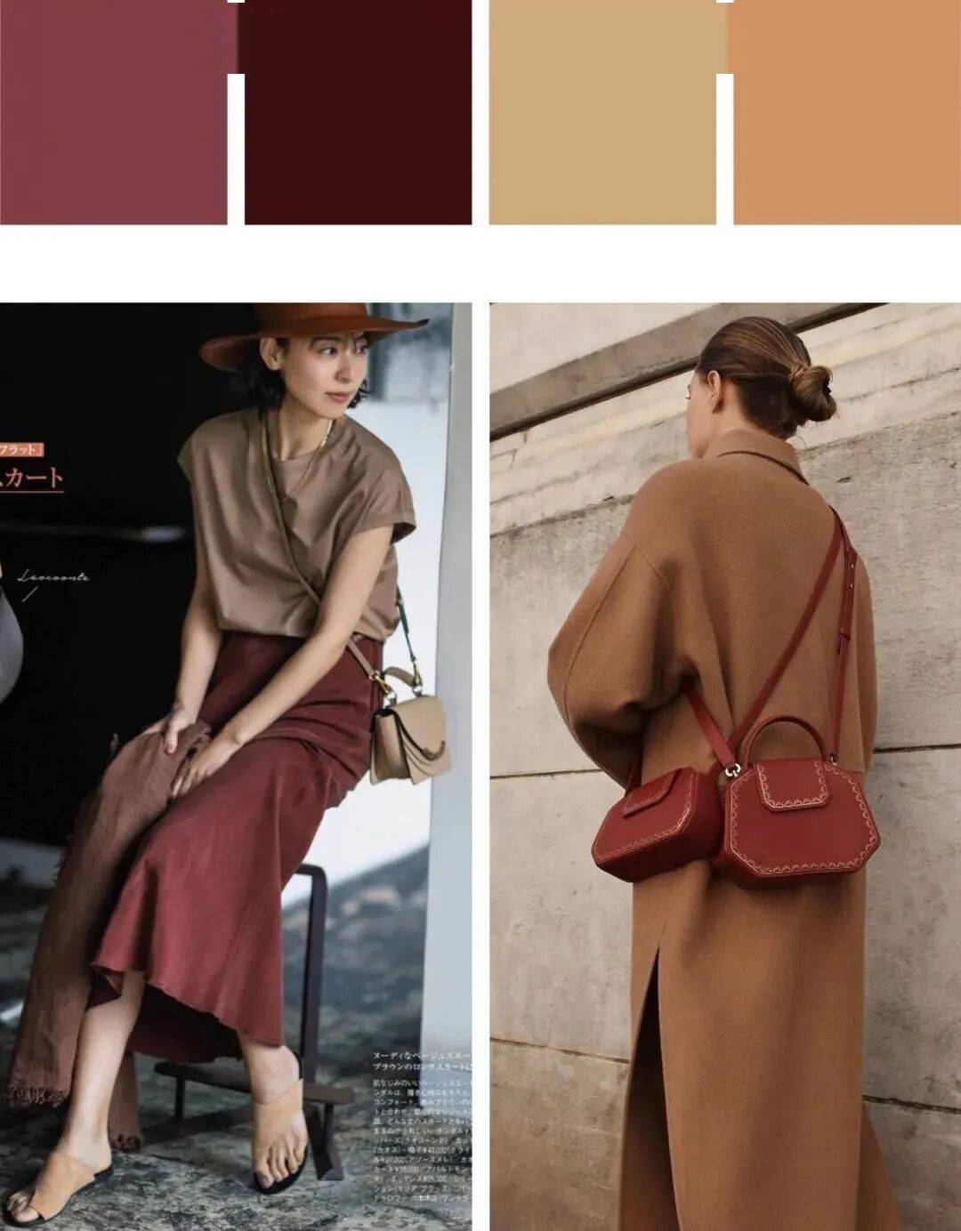 4. 大地色+酒红色:秋冬复古滤镜的点睛之笔