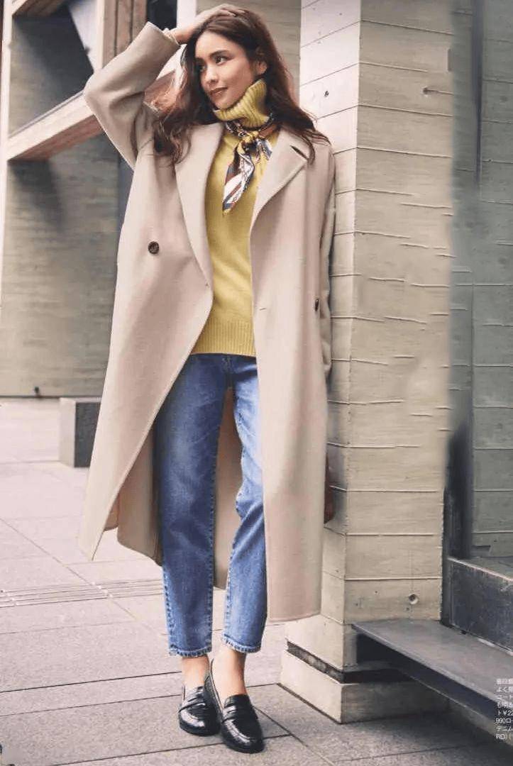 - 简洁风:全身仅保留大地色与蓝色,如驼色大衣+牛仔裤,低调时尚。