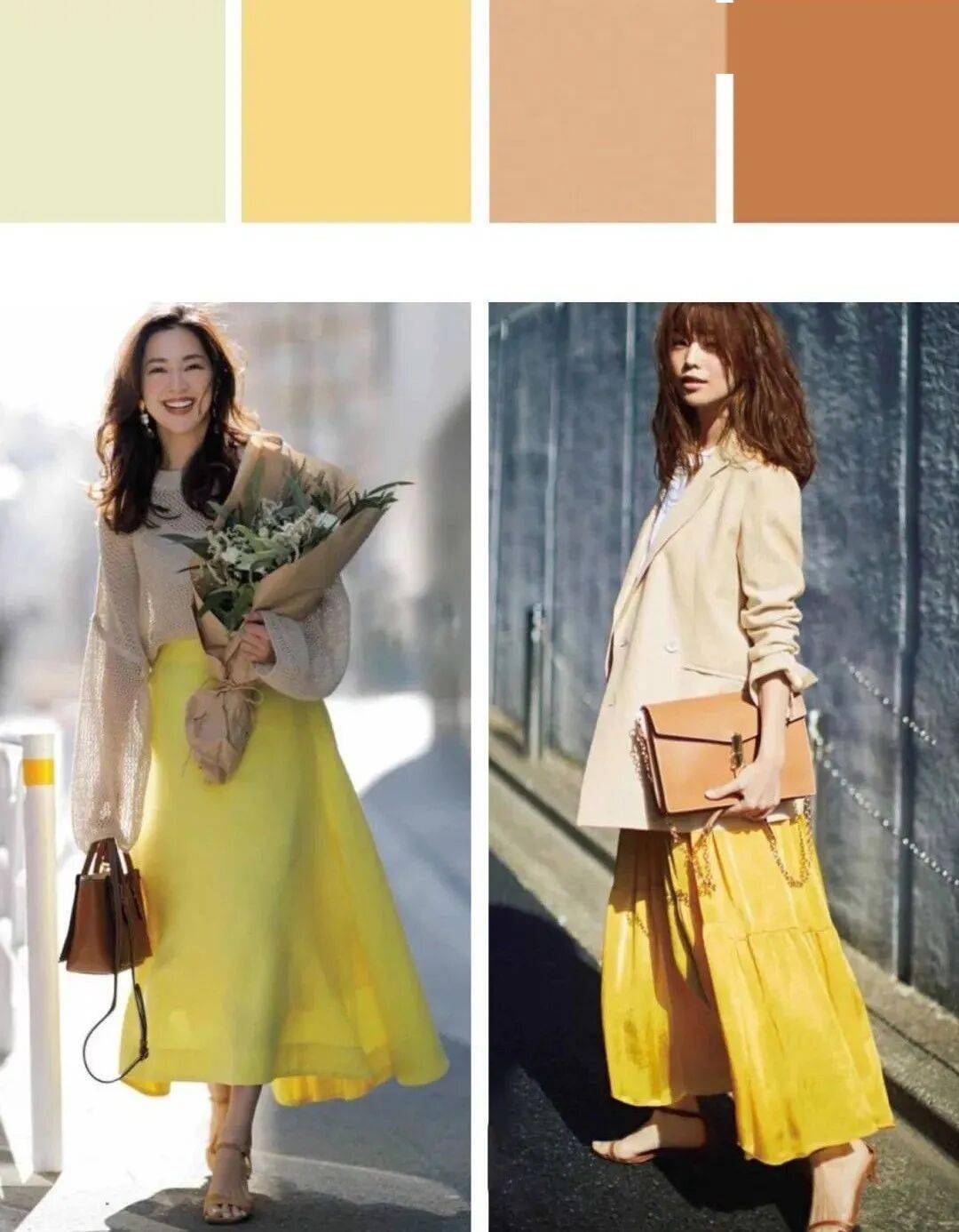 - 原理:淡黄/明黄与大地色形成温暖对比,适合秋末冬初的叠穿。