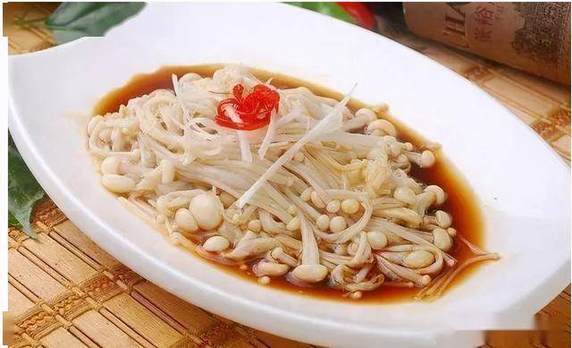 1.去除金针菇根部洗净,在沸水中烫煮捞出备用