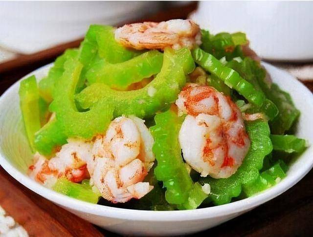材料:苦瓜2根、鲜虾200克、大蒜3瓣、花椒20粒、料酒、白胡椒粉、盐、糖、米醋适量