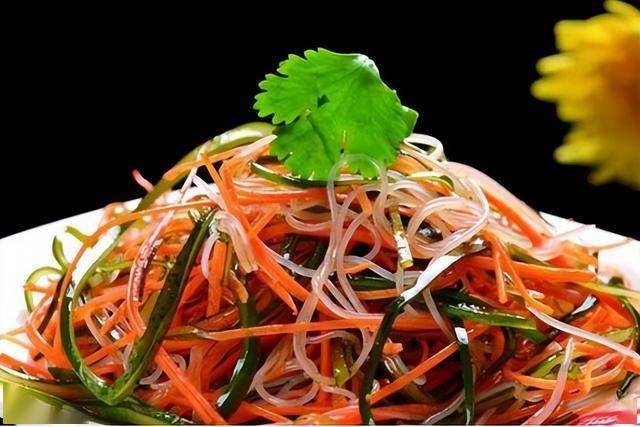 特点:清爽开胃,海带的脆嫩与胡萝卜的甘甜相得益彰,是夏日餐桌上的绝佳凉菜。