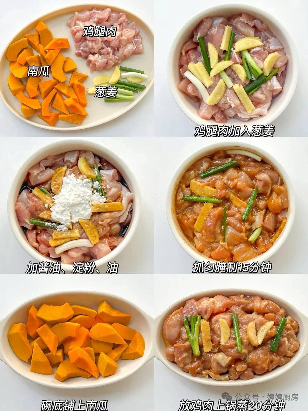 三、南瓜蒸鸡腿:香甜入味,低脂健康