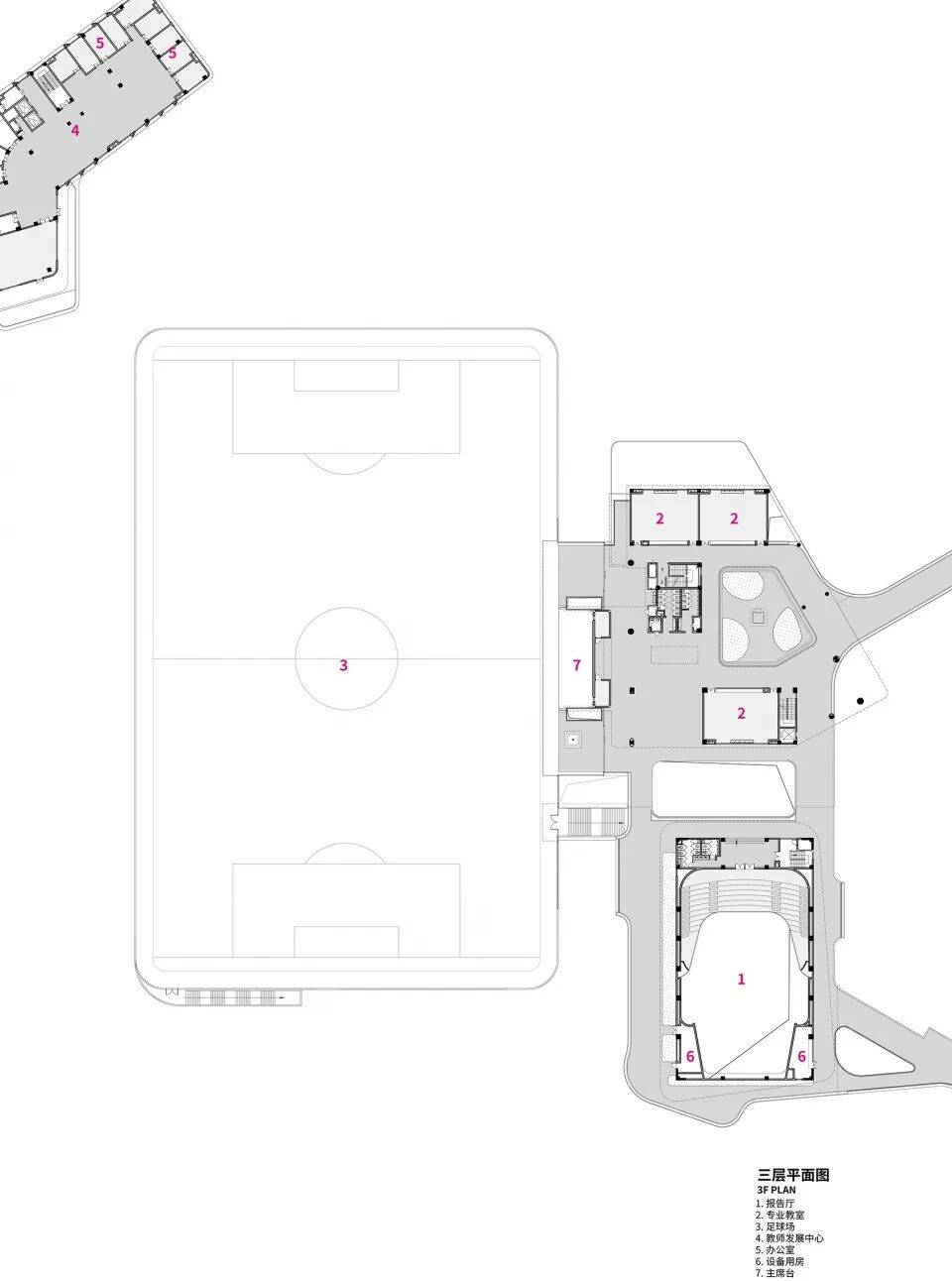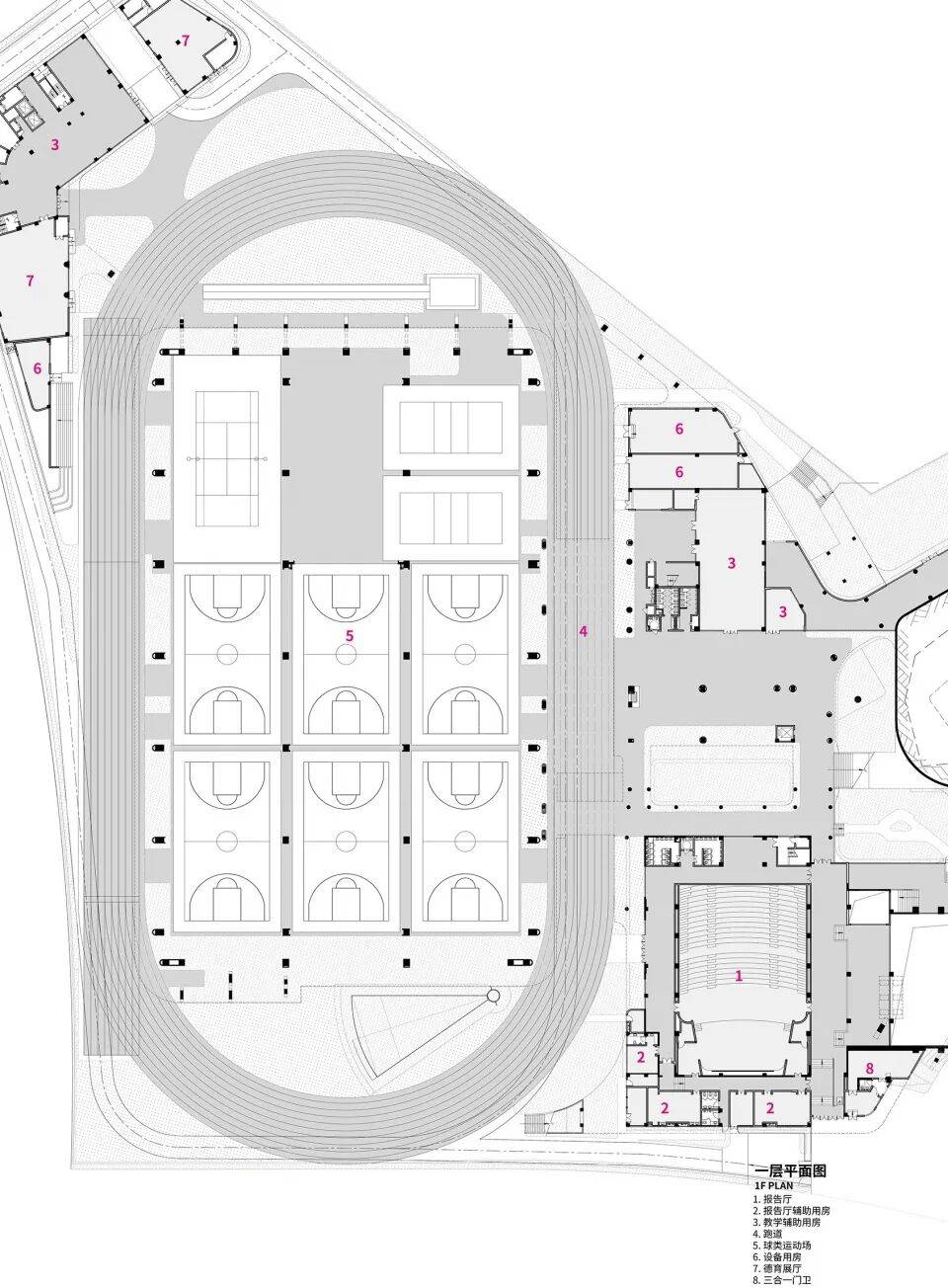 ▲教学楼架空体育场与跑道的关系© 吴志盛