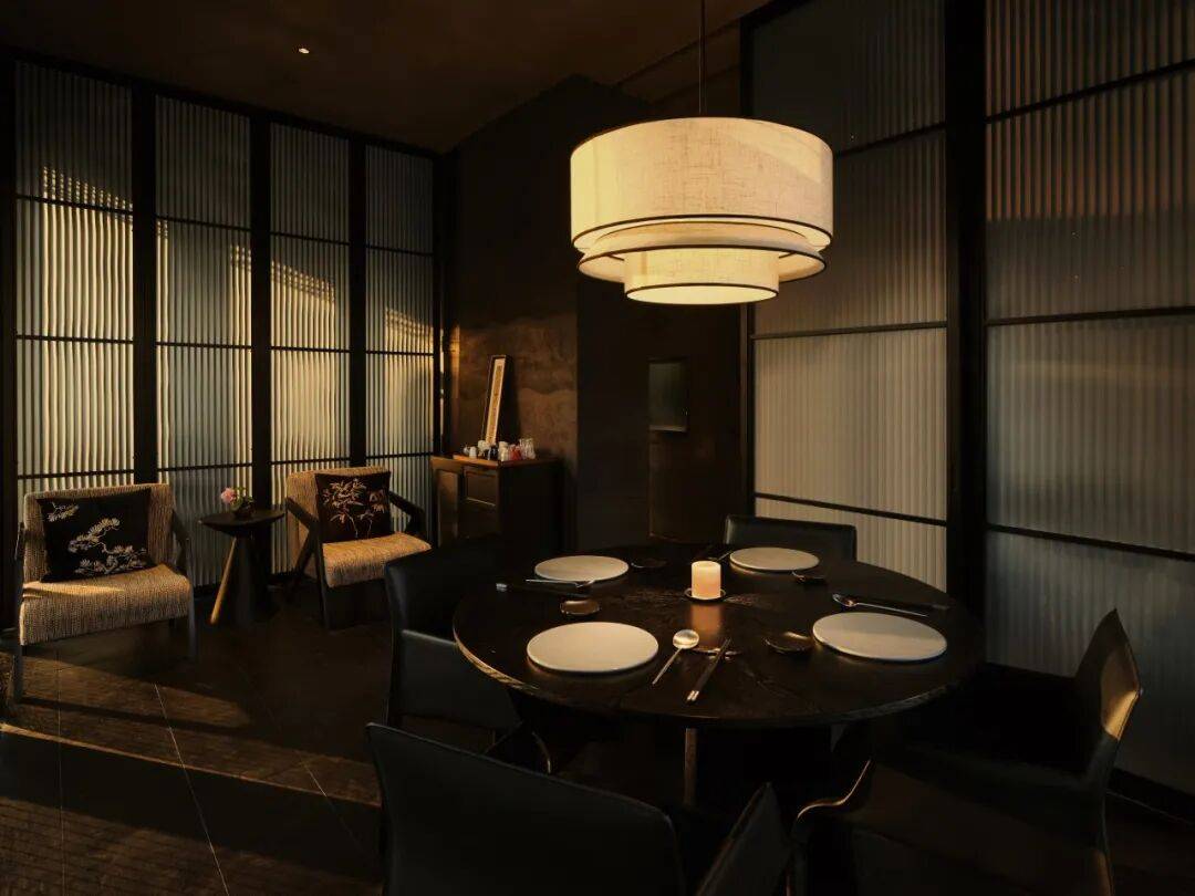2. 包厢设计特色:用光雕刻出“幽闲境”,天光与室内柔光巧妙交织,谱写静谧明暗韵律。极致私密雅致,成为隔绝喧嚣的过渡带,让心境在美食未至时沉静下来。