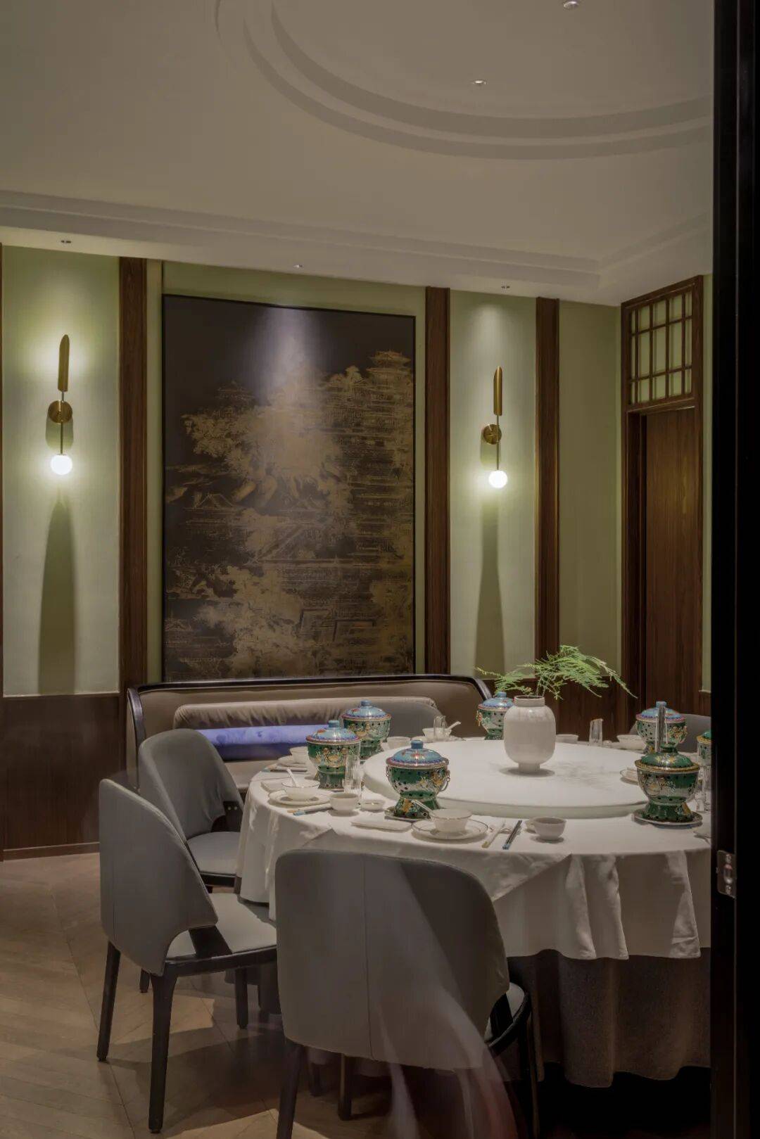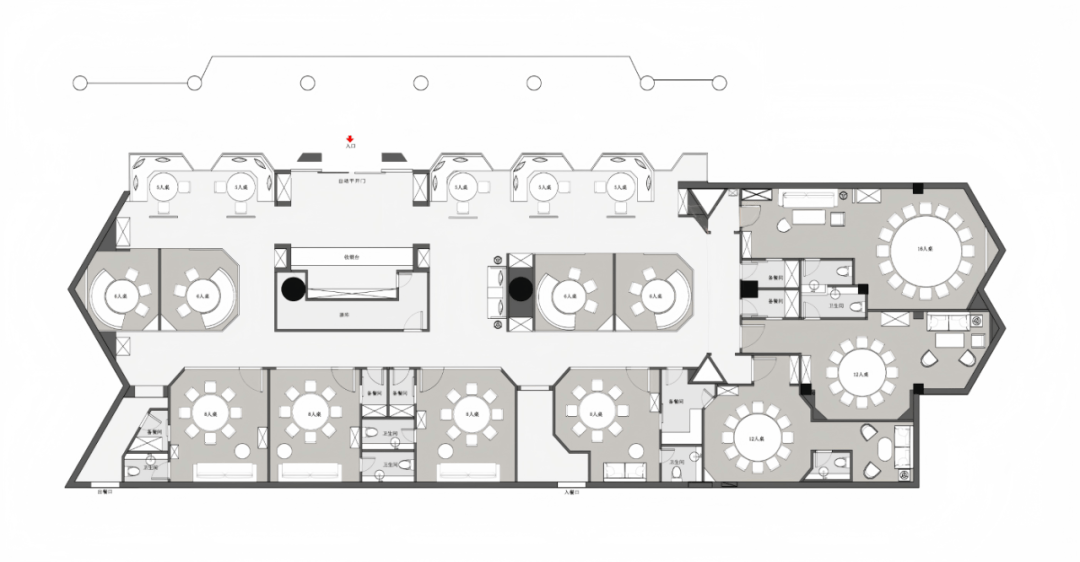 以私密包间为主:餐厅以私密包间为主要空间形态,兼顾高端宴饮的私密需求与文化体验的沉浸感。少量散座设置于公共区域,满足多样化用餐场景。