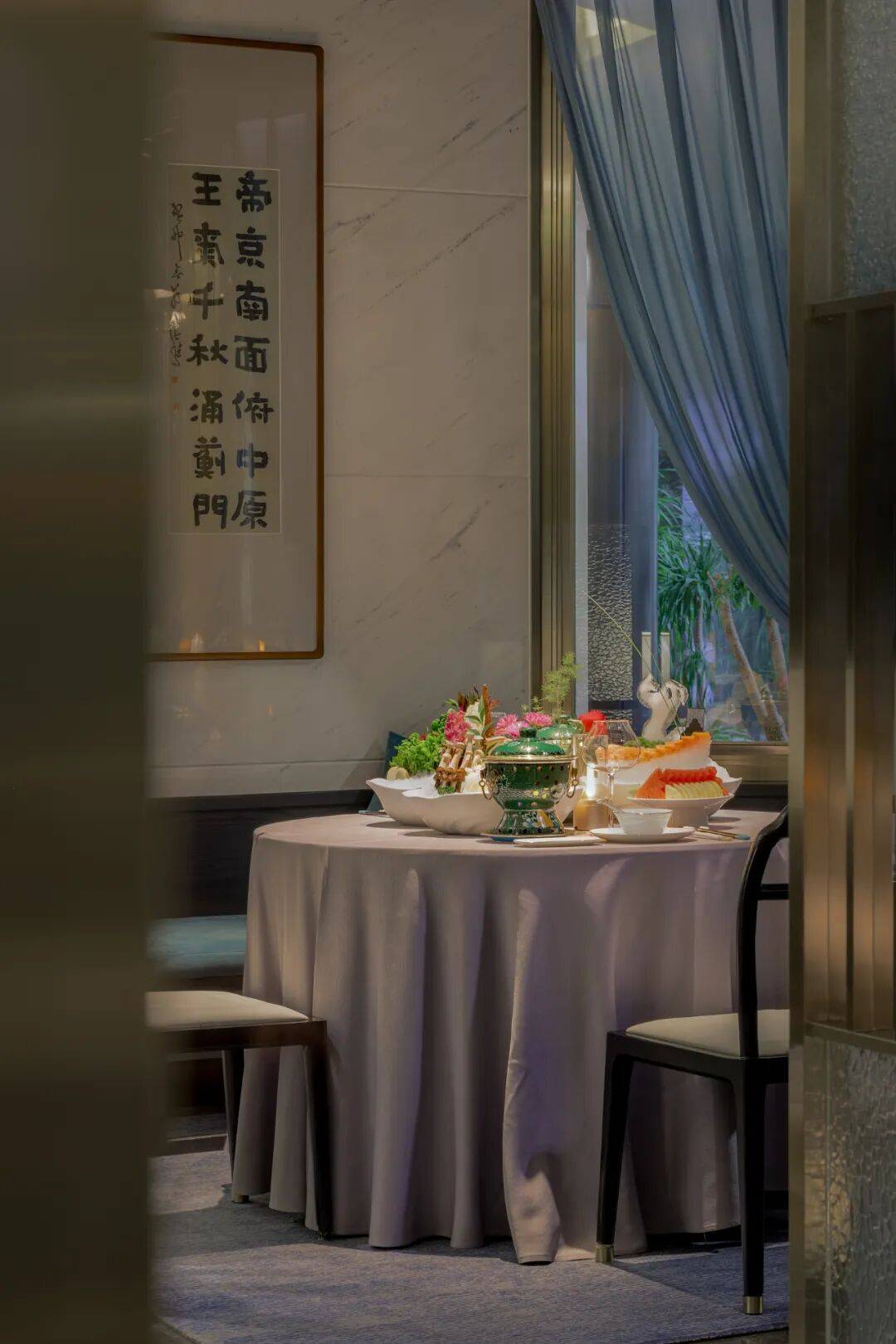 北京渔蓝养生海鲜火锅以500㎡的空间,构建了一座融汇自然、文化与味觉的体验剧场。从园林月亮门的入口意象,到包间内一景一文化的精致呈现,设计团队以“京华气韵·雍雅气度”为线索,将京城风雅转化为可沉浸的空间叙事。在这里,古典与现代相映,艺术与生活相融,每一次宴饮皆是对京城文化的一次深度感知与情感共鸣。
