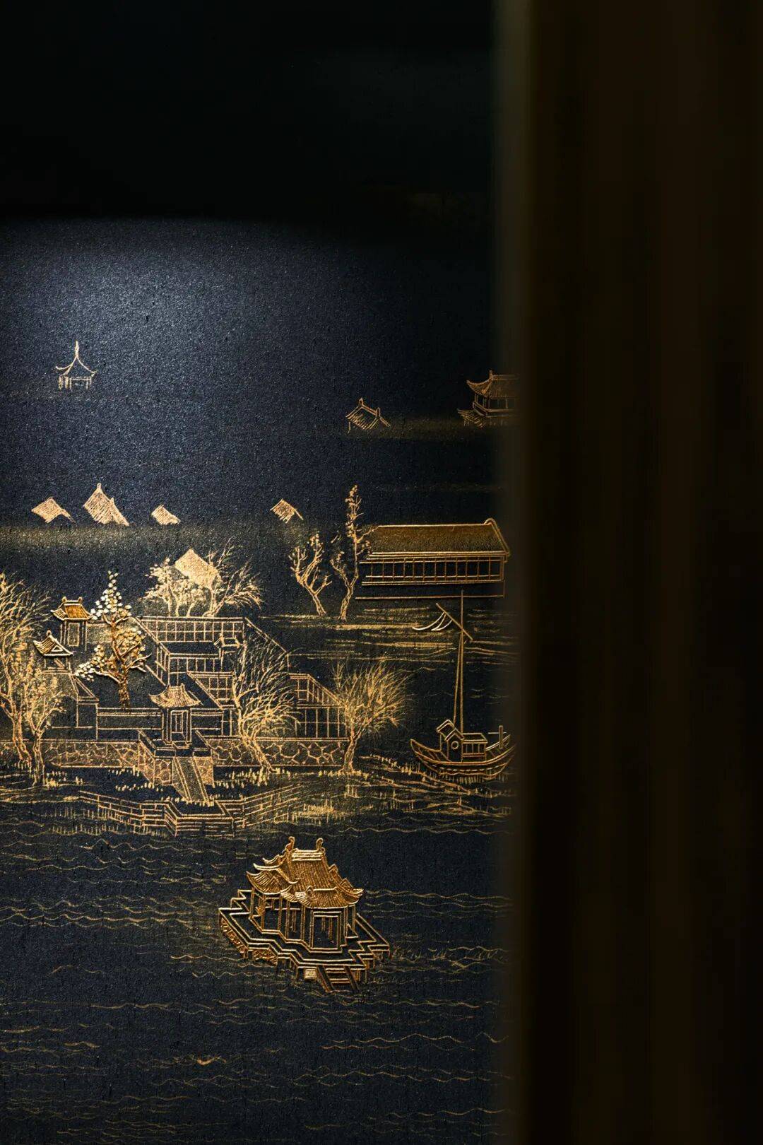 材质工艺:休息区设置艺术家手工绘制的大漆壁画,以恢宏画卷描绘北京风貌,提升空间艺术价值。包间墙面则通过纸雕、珐琅、刺绣、铝板腐蚀等传统与当代工艺,精致再现颐和园、卢沟桥、燕山八景等京华印象,使文化在空间中流转可见。