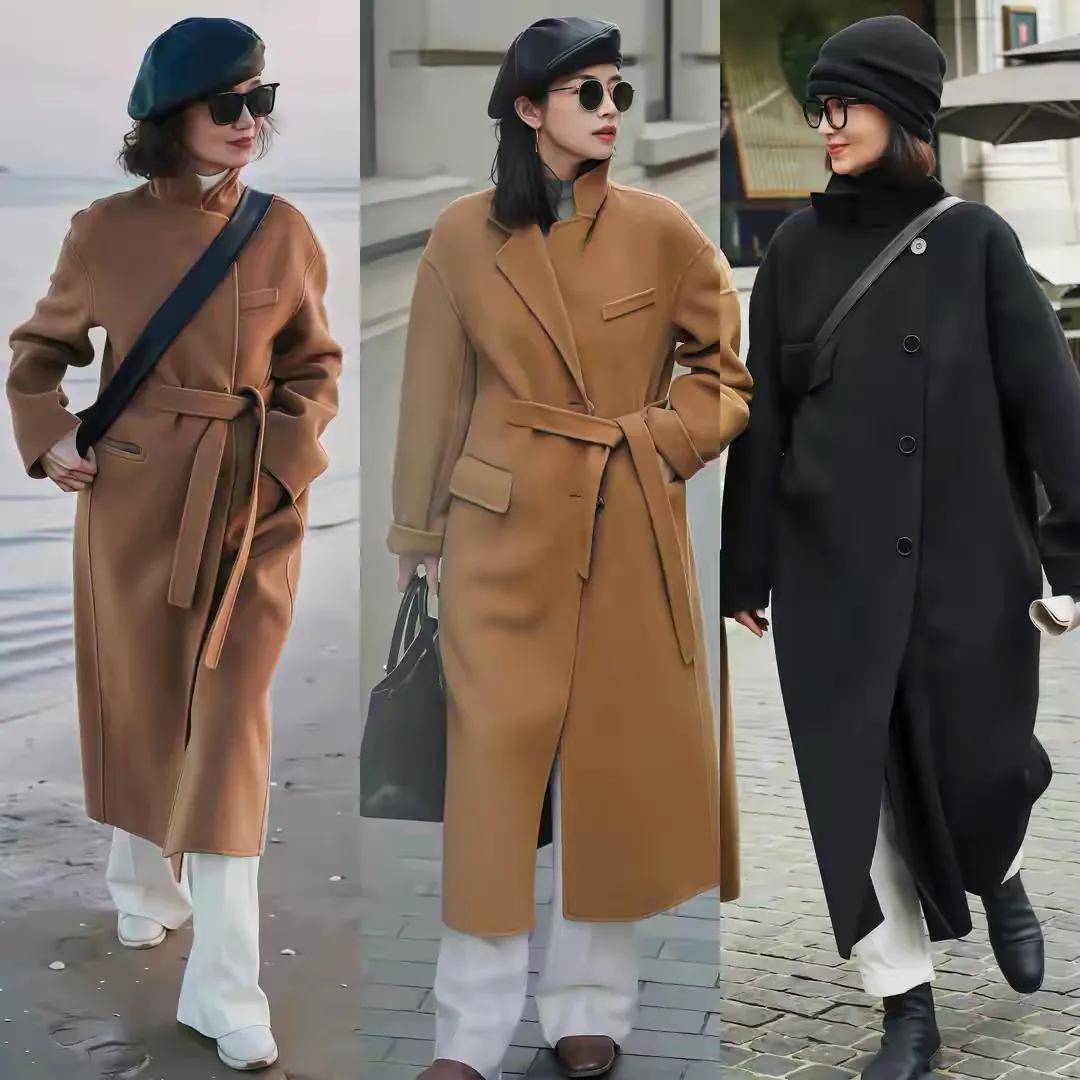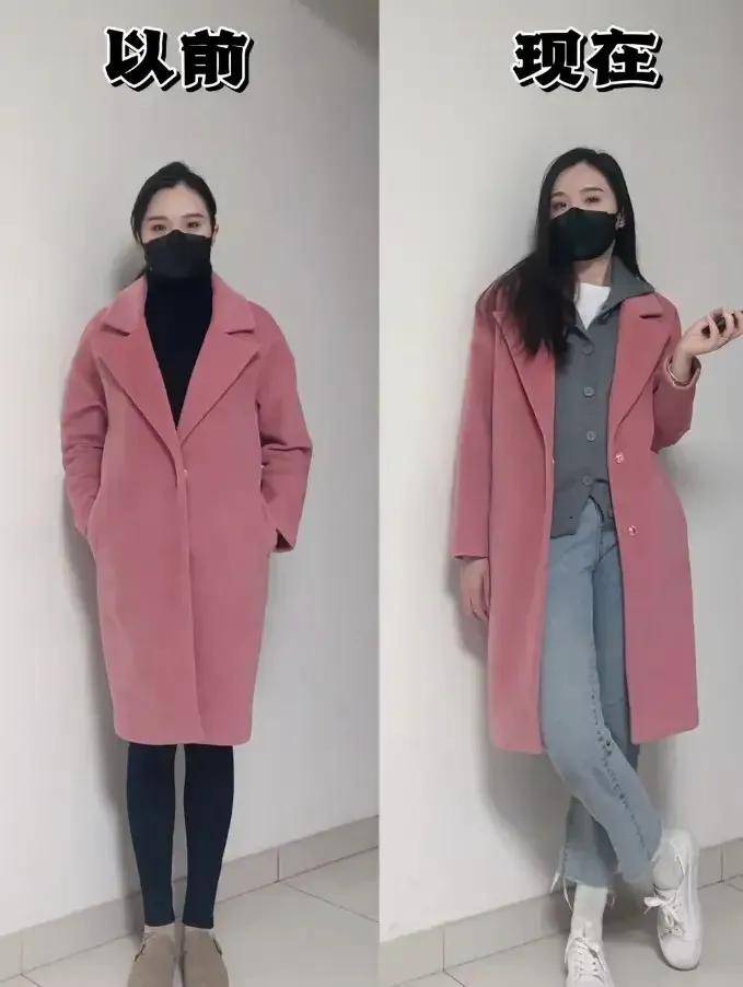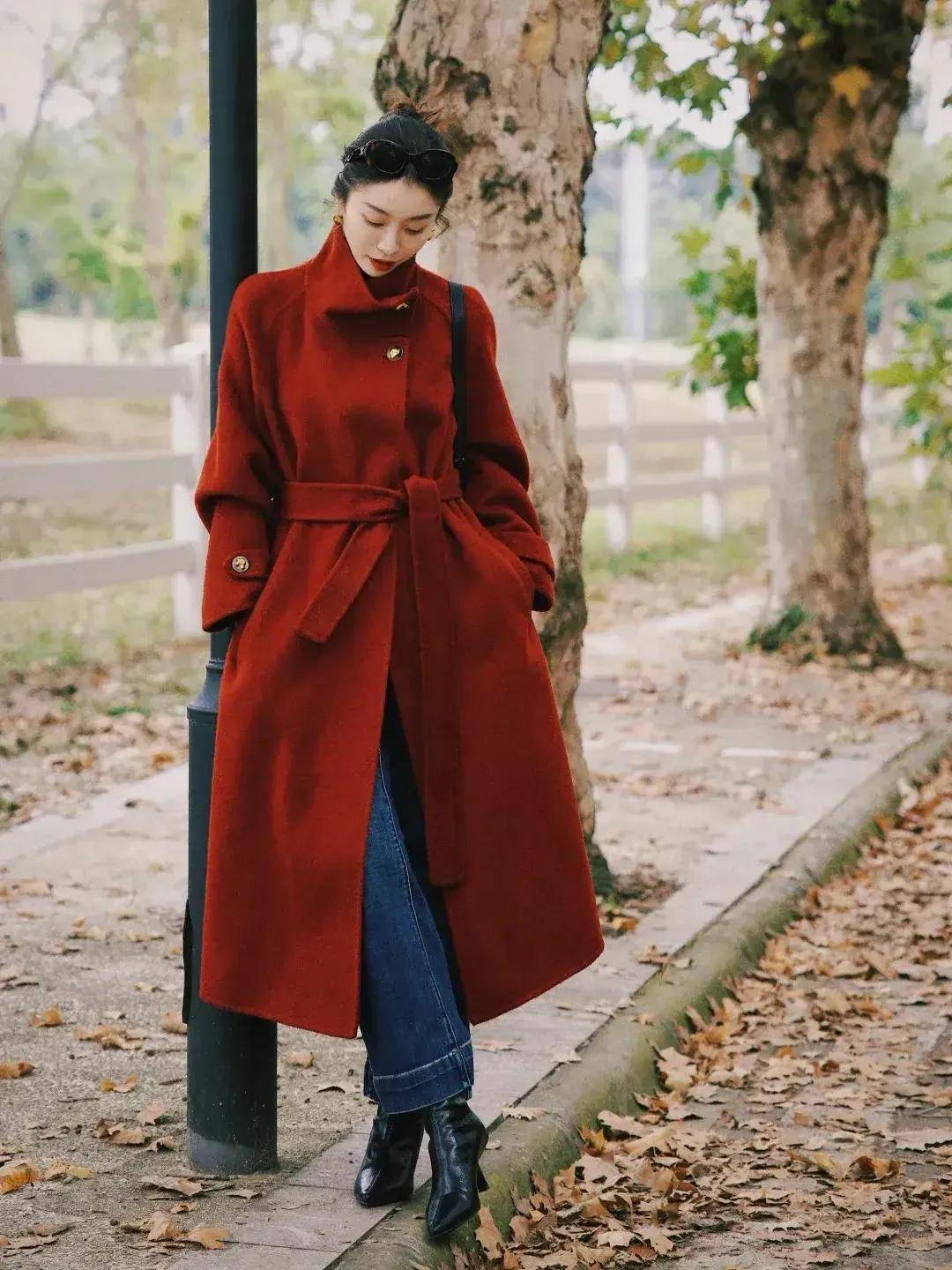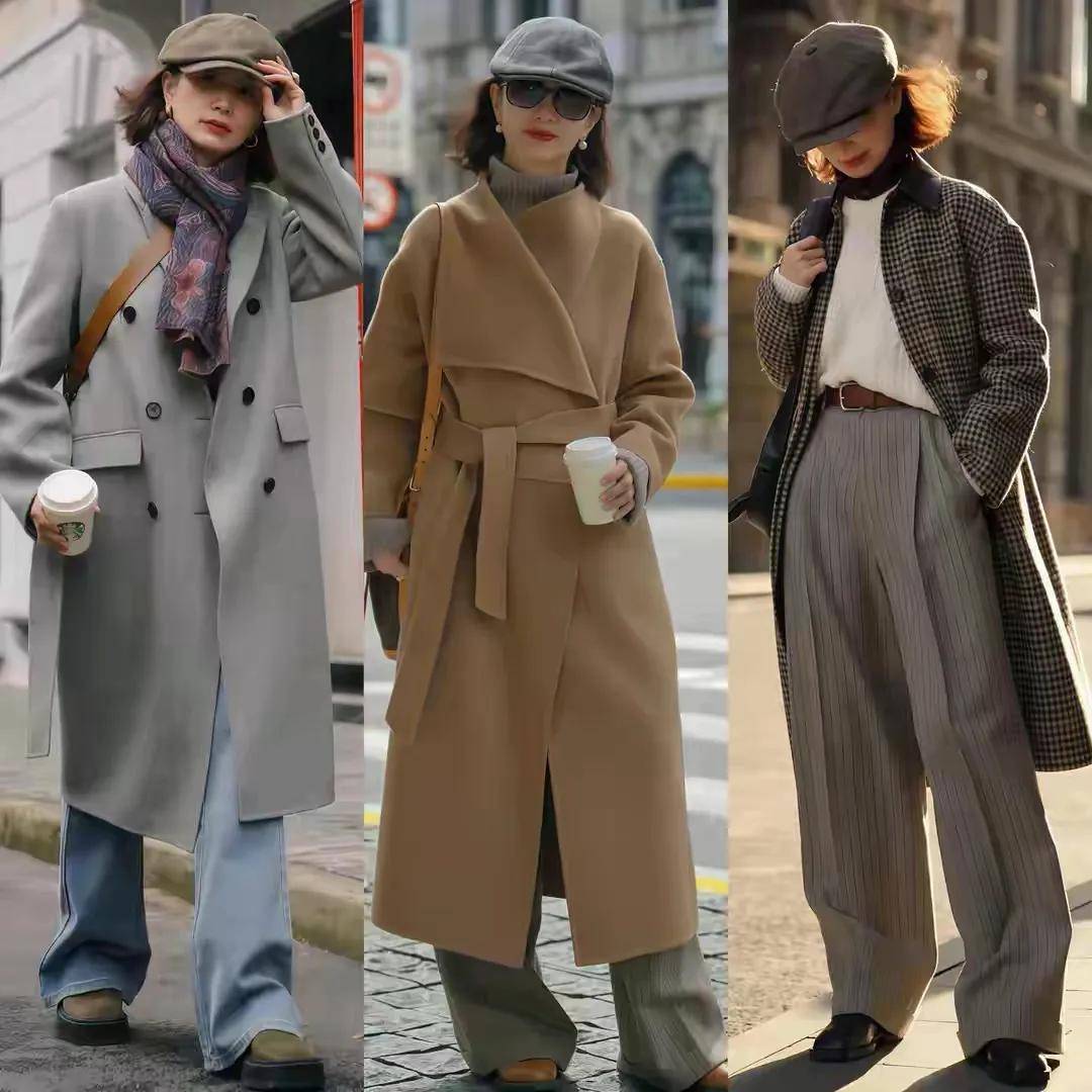 高腰收腰,强调曲线:无论是大衣还是内搭,都喜欢“塞腰”或选择带收腰设计的款式。比如三木妈妈穿的灰色大衣,腰间有隐形收腰,内搭红色毛衣塞进阔腿裤腰头,既突出了腰部曲线,又让整体造型更有层次感——特别适合五五分身材或腰腹有肉的人。
