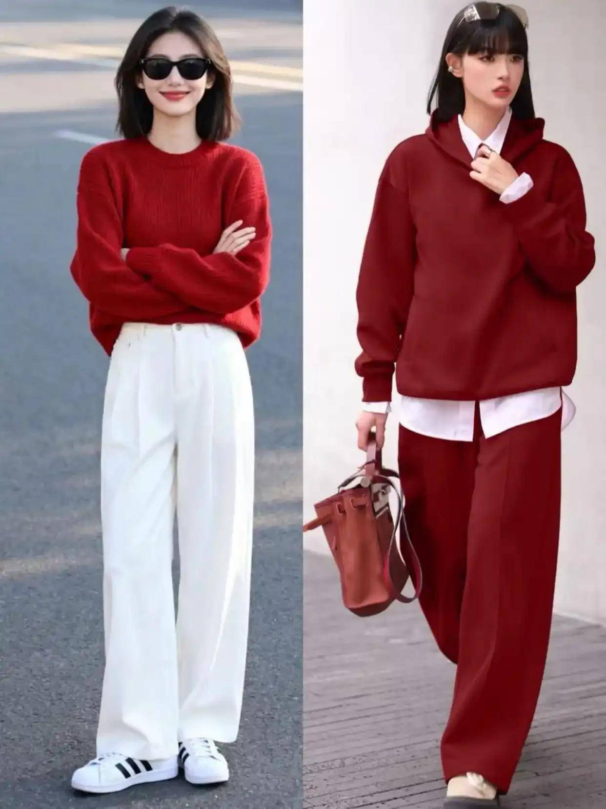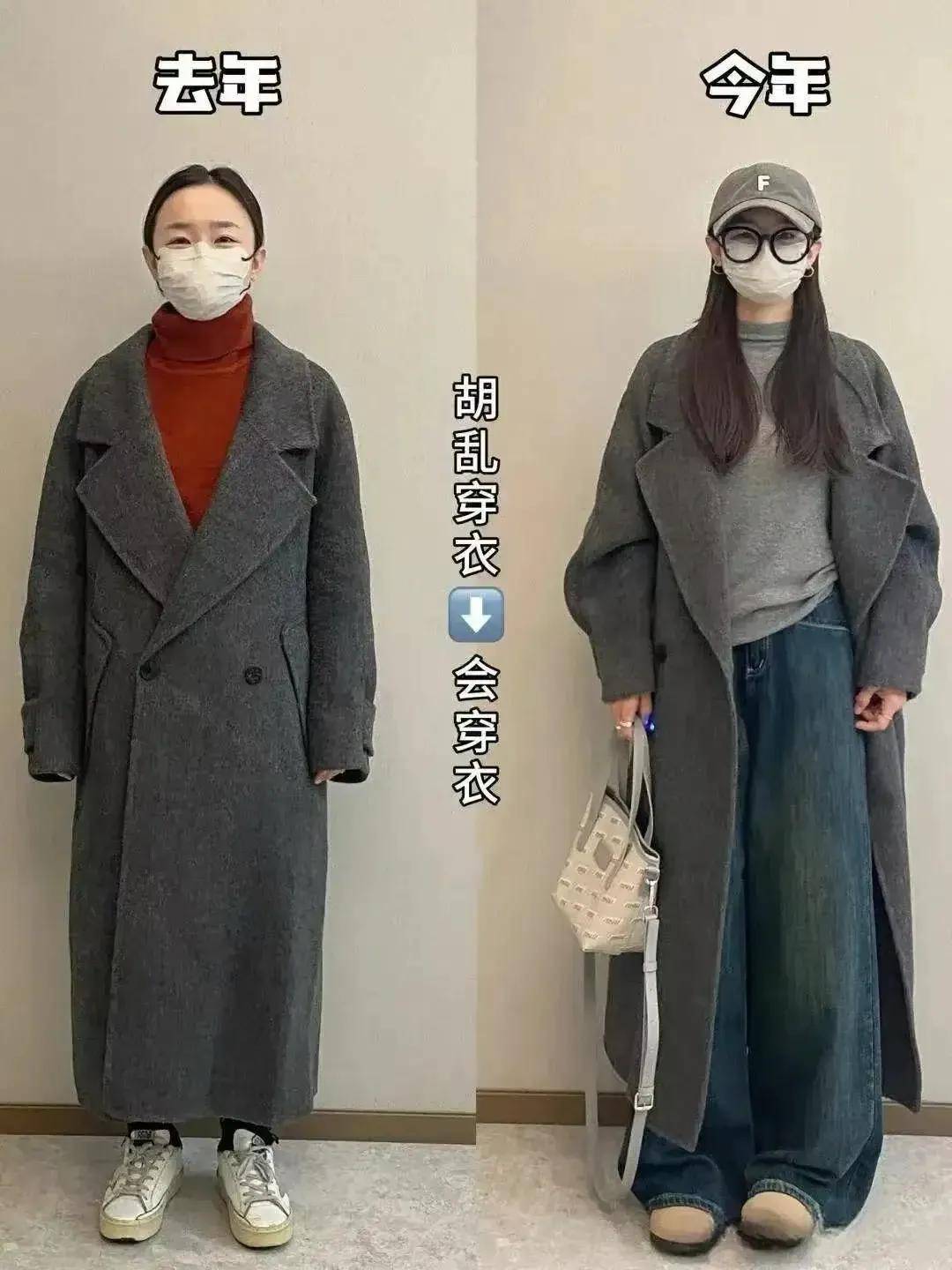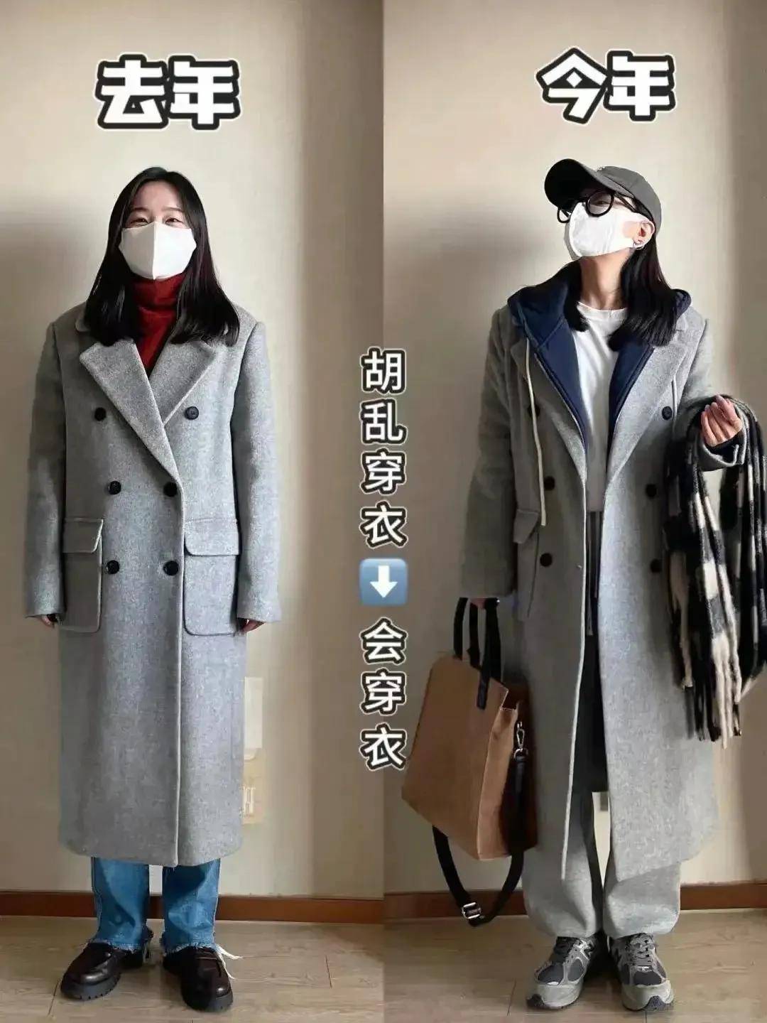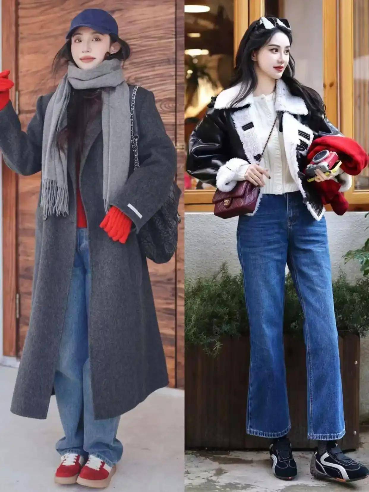 高腰收腰,强调曲线:无论是大衣还是内搭,都喜欢“塞腰”或选择带收腰设计的款式。比如三木妈妈穿的灰色大衣,腰间有隐形收腰,内搭红色毛衣塞进阔腿裤腰头,既突出了腰部曲线,又让整体造型更有层次感——特别适合五五分身材或腰腹有肉的人。