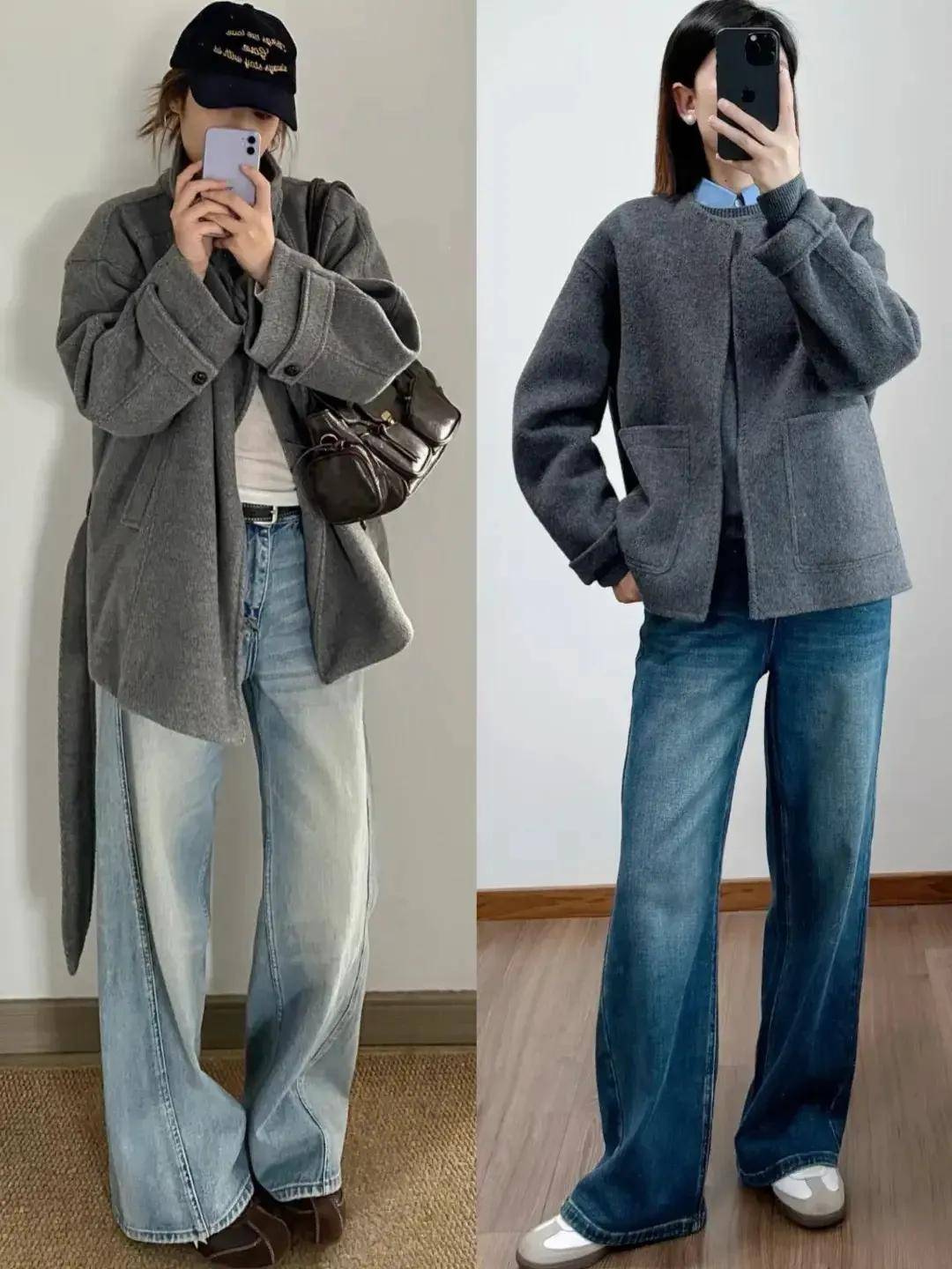 高腰设计:能瞬间提升腰线,把身材比例拉成“三七分”,即使是小个子也能穿出大长腿既视感。比如三木妈妈常穿的牛仔阔腿裤,腰头刚好卡在肚脐上方,搭配短款大衣,整个人看起来高挑又精神。