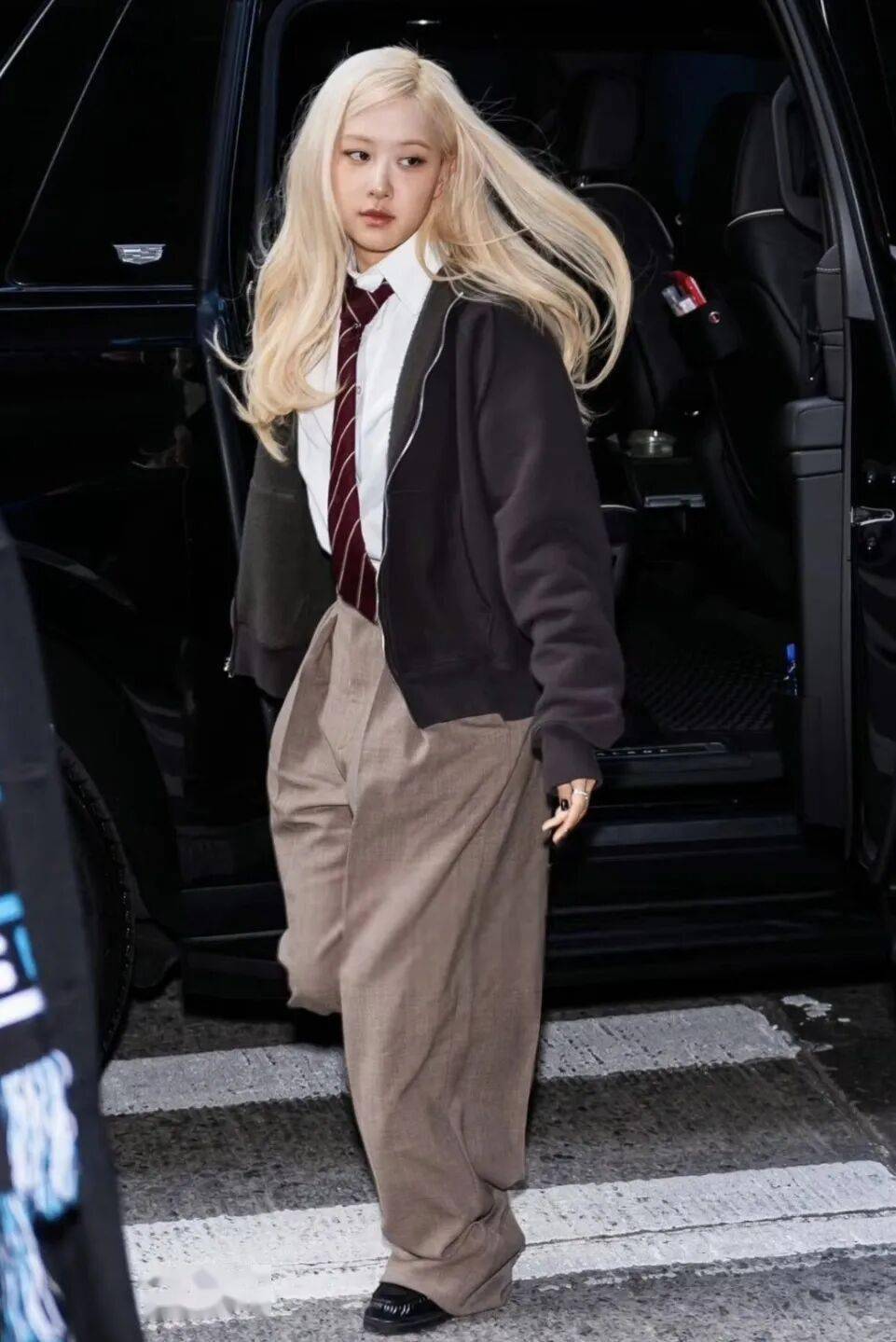 小面积亮色点缀:基础色(黑白灰、卡其)中加入小面积亮色(如酒红大衣、栗子色马甲),提亮造型但不张扬,契合冬季气质,避免全暗色系显沉闷。