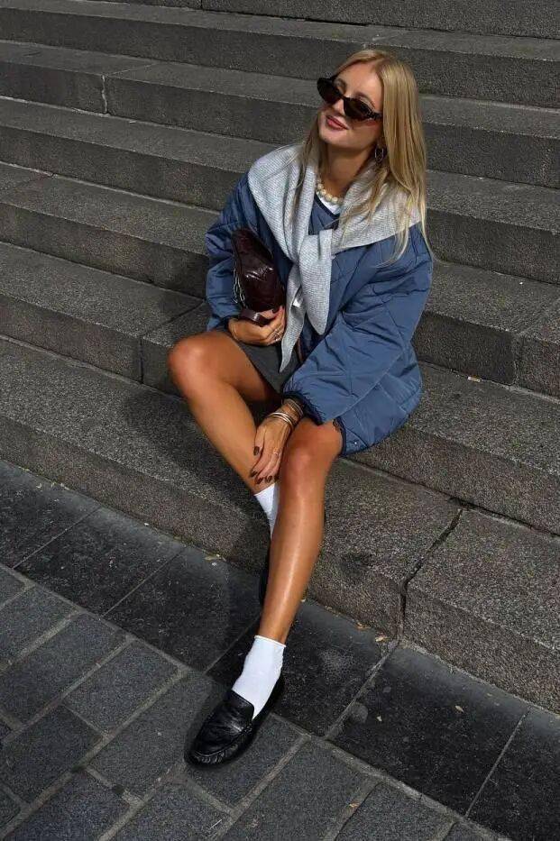 细节:衬衫下摆露在羽绒服外,破解“面包服”感,显质感。