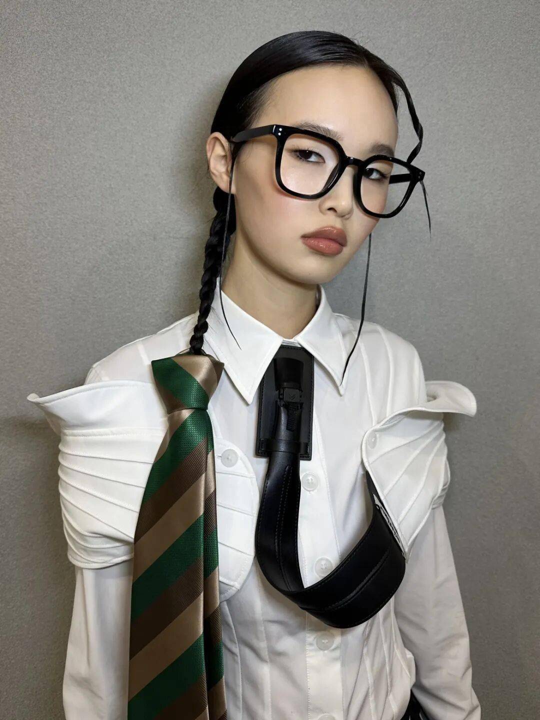 用腰带收腰:无论是大衣、羽绒服还是风衣,系一条腰带(宽/细根据外套版型调整),收紧宽松外层,突出腰腹线条,纵向拉长身形;