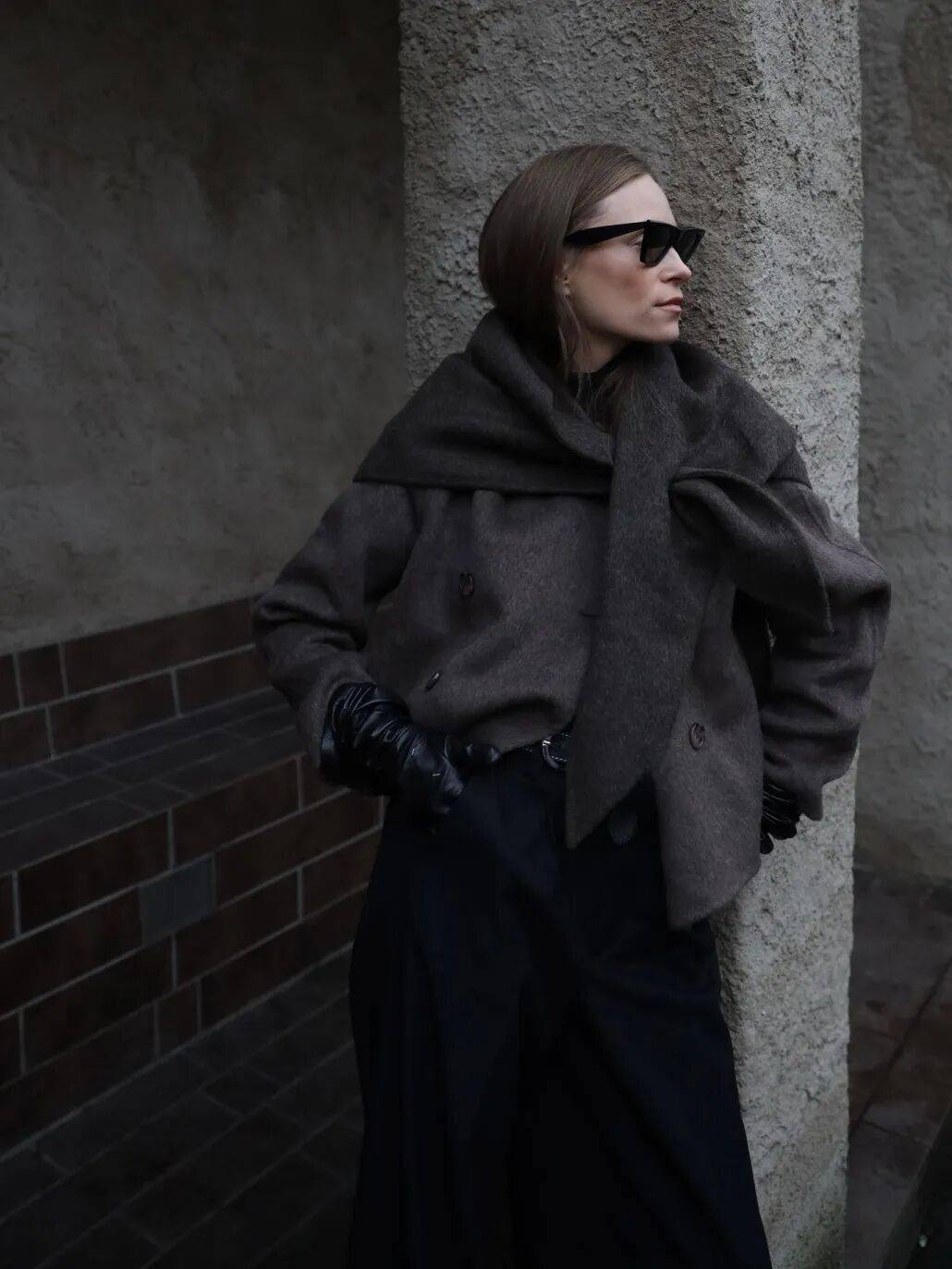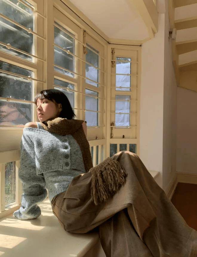 围巾:作为“第四层”,用长围巾的纵向线条让视线集中(例:粗线毛衣+ 大衣+ 长围巾),或用堆积感围巾打造H型(例:背带裤+ 毛衣+ 围巾),收敛整体装扮。