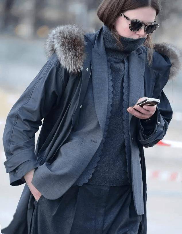 同色系/近色搭配:内搭、中层、外层选同一色系(如浅灰+ 中灰+ 深灰)或相近颜色(如燕麦色+ 米白+ 深卡其),和谐统一,纵向线条明显,避免颜色杂乱显胖。