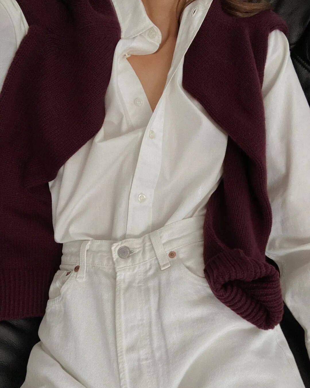 袖口层次:把内搭的袖口挽起或露出,例:衬衫袖口露在毛衣外,撞色或不同材质(如棉麻衬衫+羊绒毛衣)的对比,增加视觉感,避免上半身单调显胖。