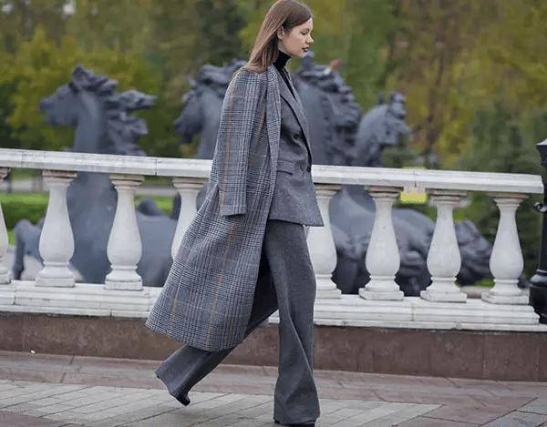 例:oversize大衣+紧身裤,宽松上衣遮住手臂和腰腹赘肉,修身下装拉长腿部线条,显高显瘦。