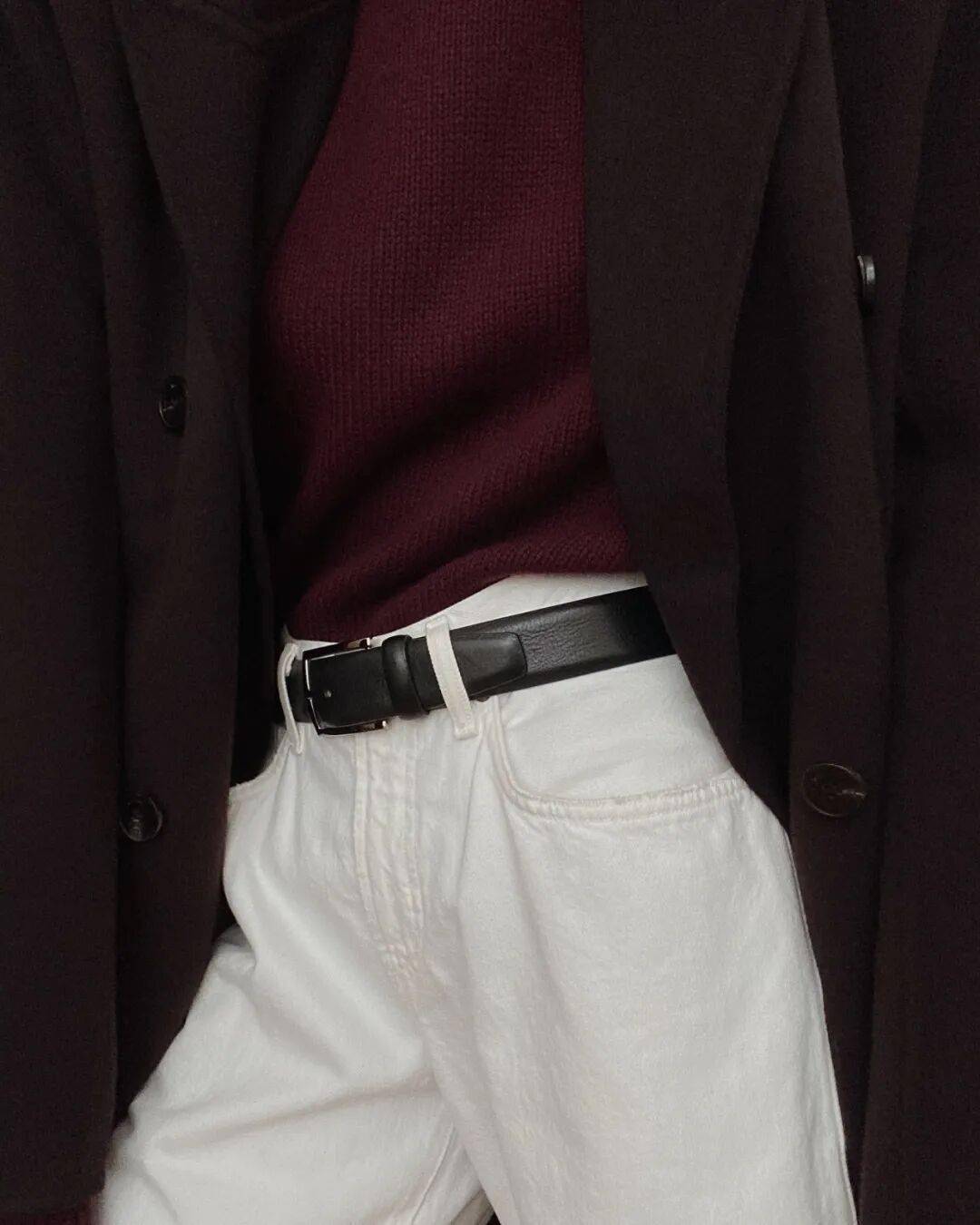 腰带:无论是大衣还是风衣,系腰带都能“一秒显瘦”,例:黑大衣配棕皮带,提升精致度。
