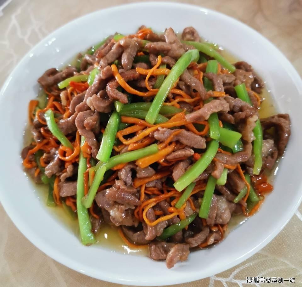 6. 倒入炒好的肉丝,淋入调好的汁,翻炒均匀即可。