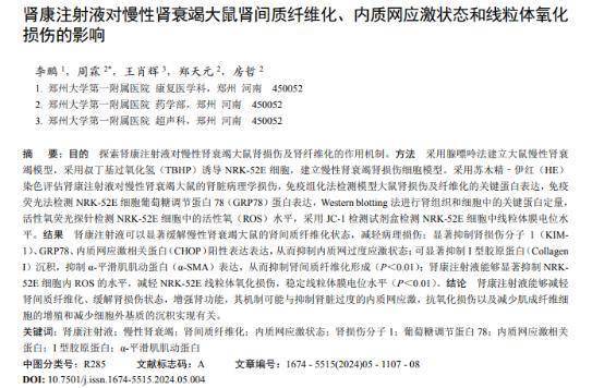 [1]李鹏.肾康注射液慢性肾衰竭大鼠肾间质纤维化、内质网应激状态和线粒体氧化损伤的影响,现代药物与临床,2024-05-28