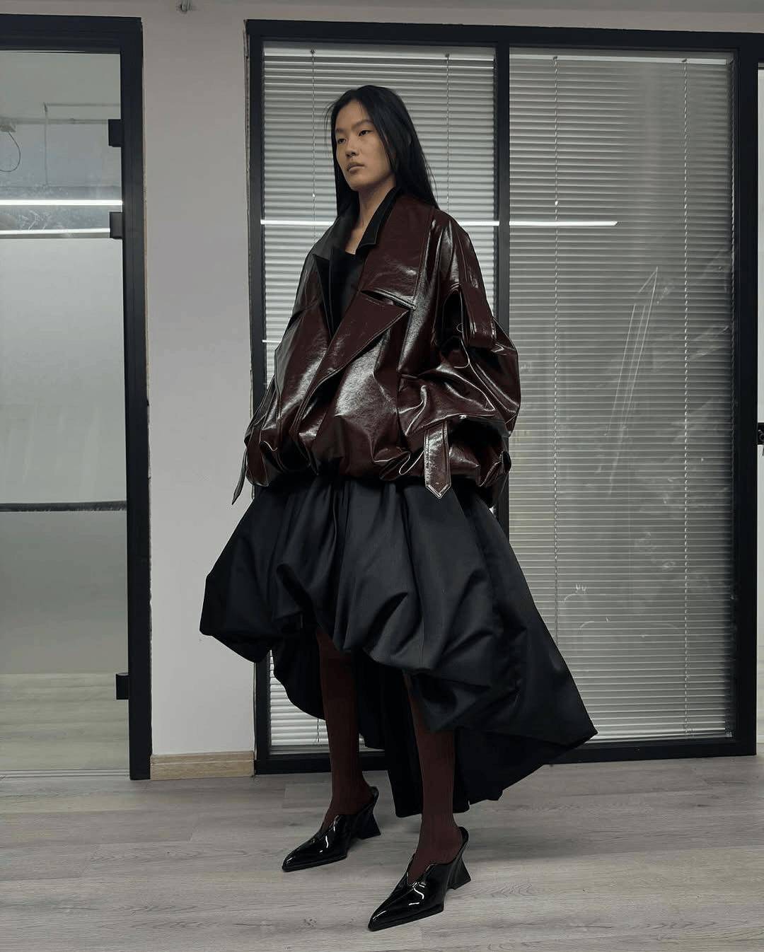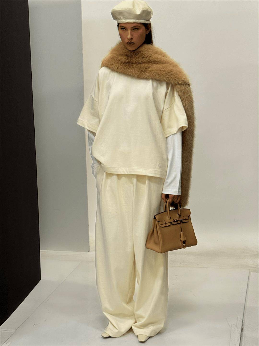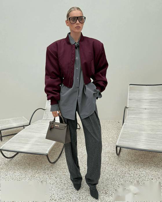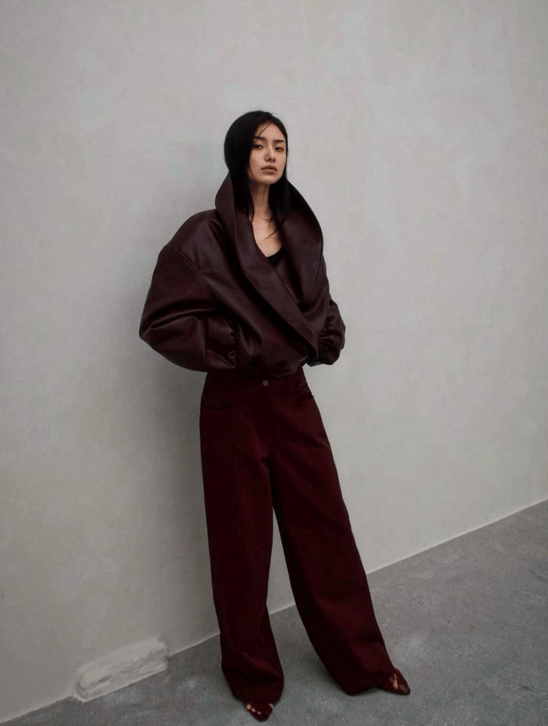 延续Power Suit的经典垫肩与利落线条,但外搭采用垂坠感强的大衣或流畅风衣,形成“外柔内刚”的视觉对比,凸显穿着者的搭配智慧与气场层次。