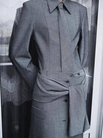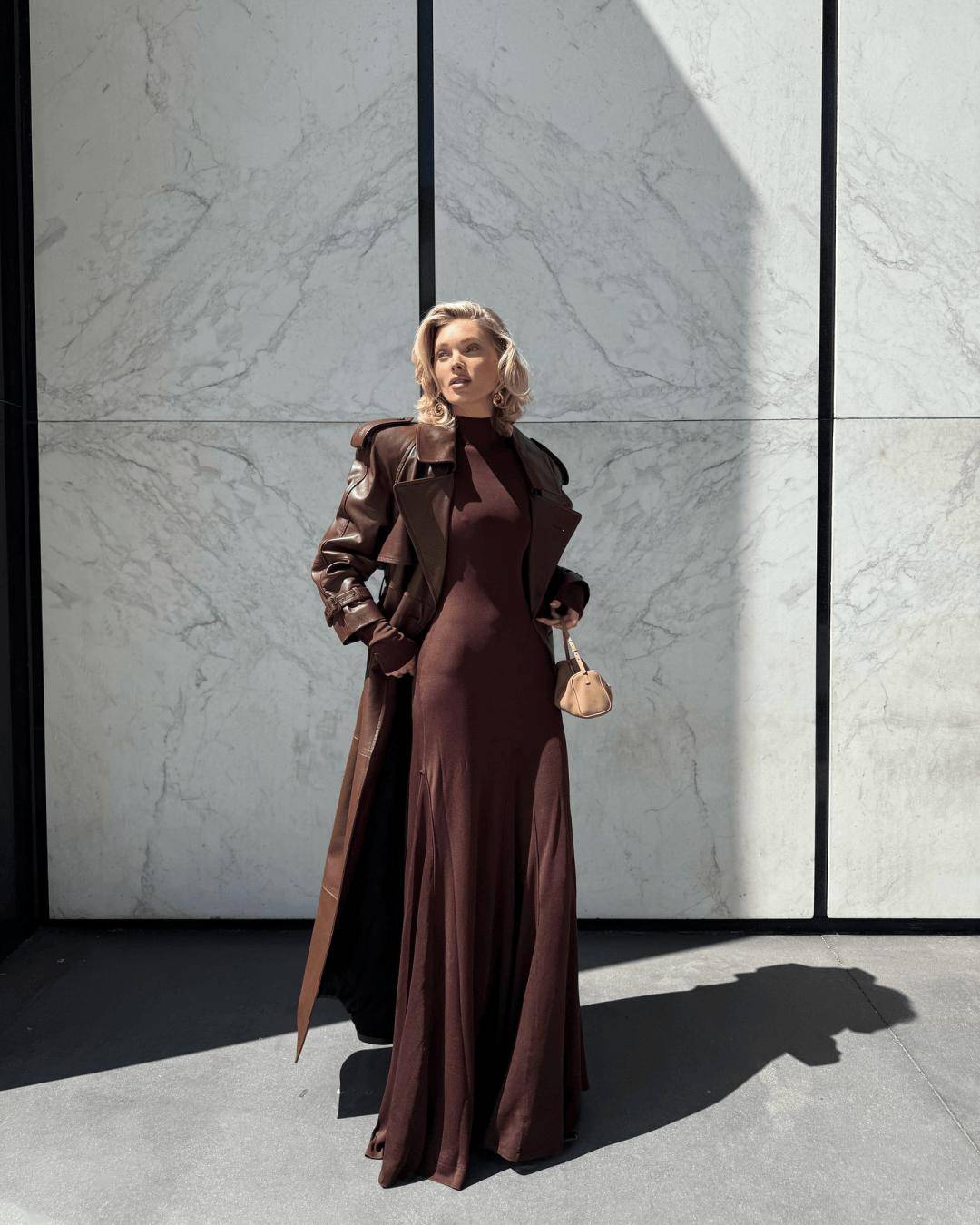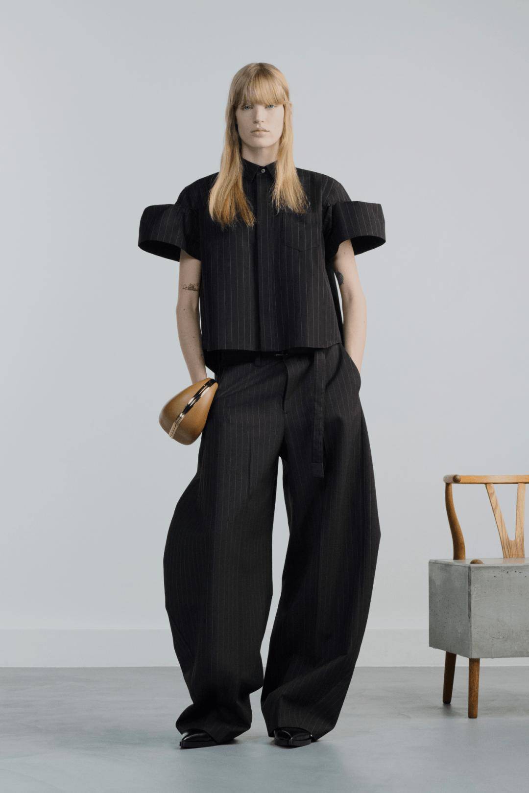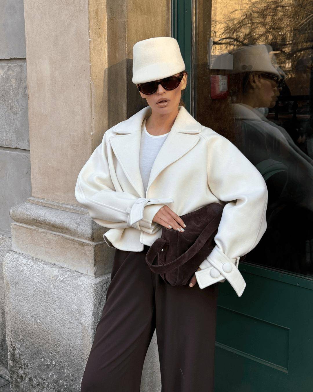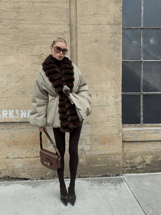 延续Power Suit的经典垫肩与利落线条,但外搭采用垂坠感强的大衣或流畅风衣,形成“外柔内刚”的视觉对比,凸显穿着者的搭配智慧与气场层次。