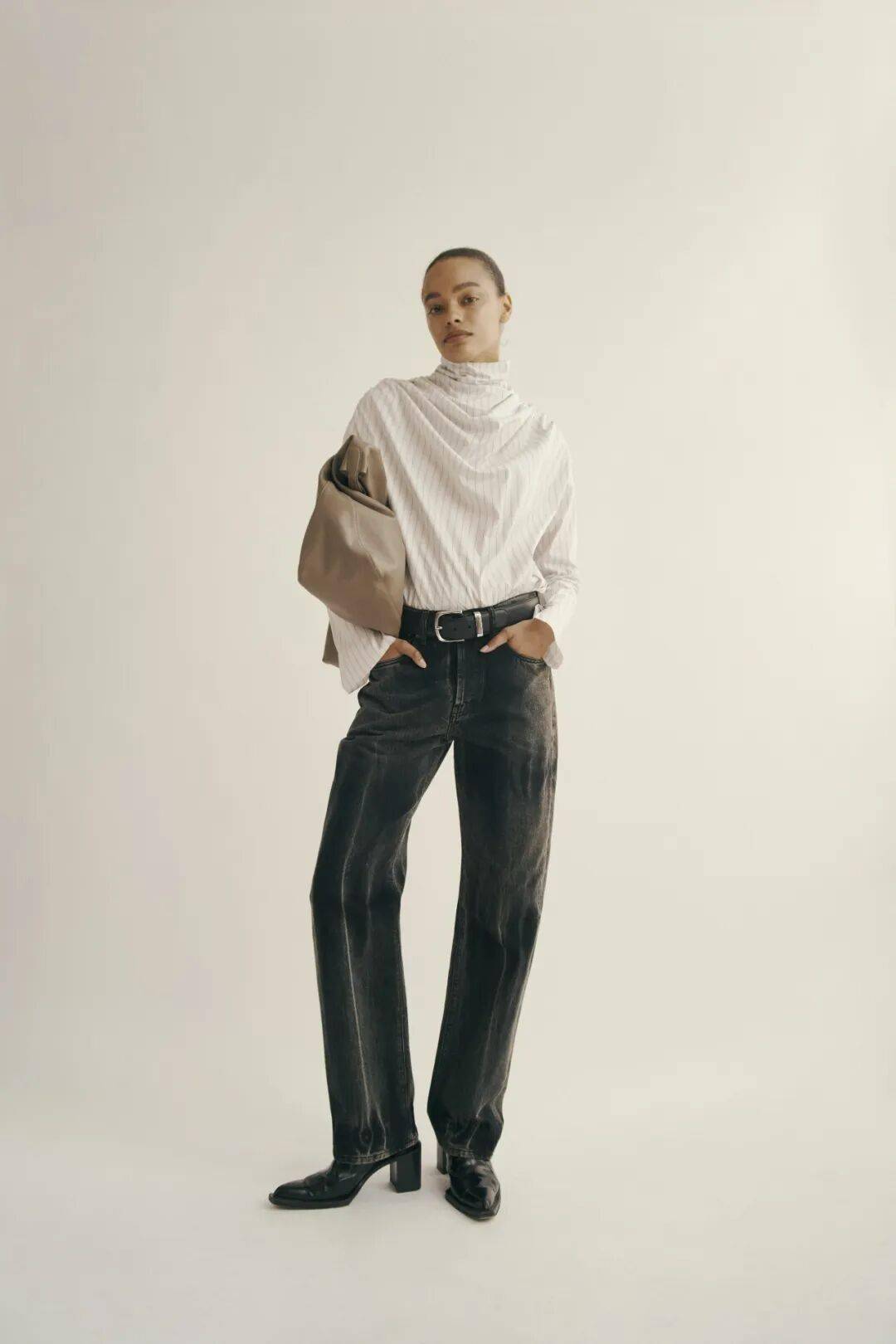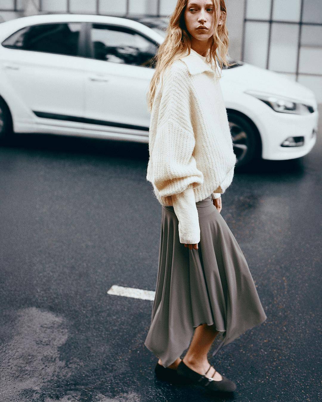 搭配一条垂坠感半裙或阔腿裤,提升流动感;