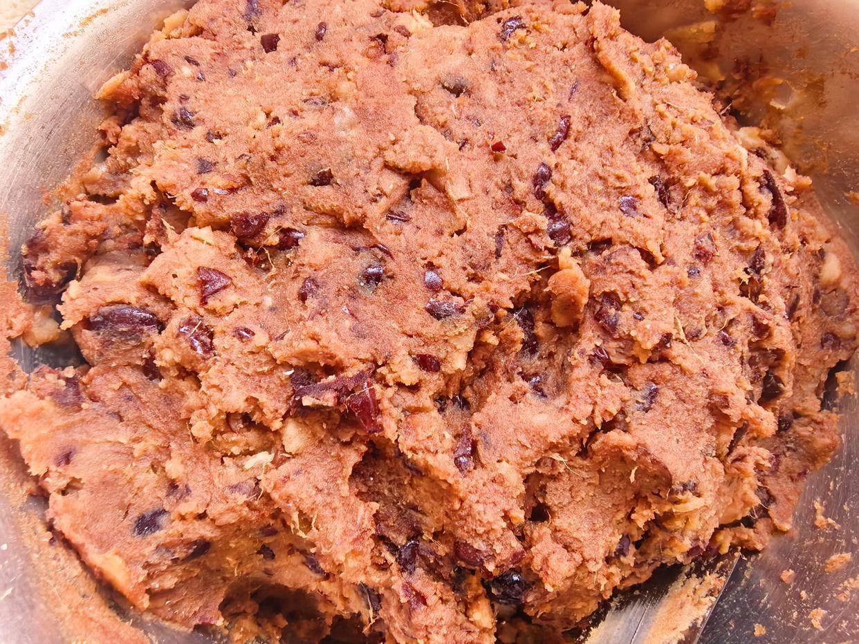 1、红豆用清水浸泡四个小时以上,上锅小火蒸一个小时,红薯去皮上锅蒸10分钟,蒸熟的红豆和红薯,加入一勺红糖或者蜂蜜,捣成泥状,红豆可以保留部分颗粒。