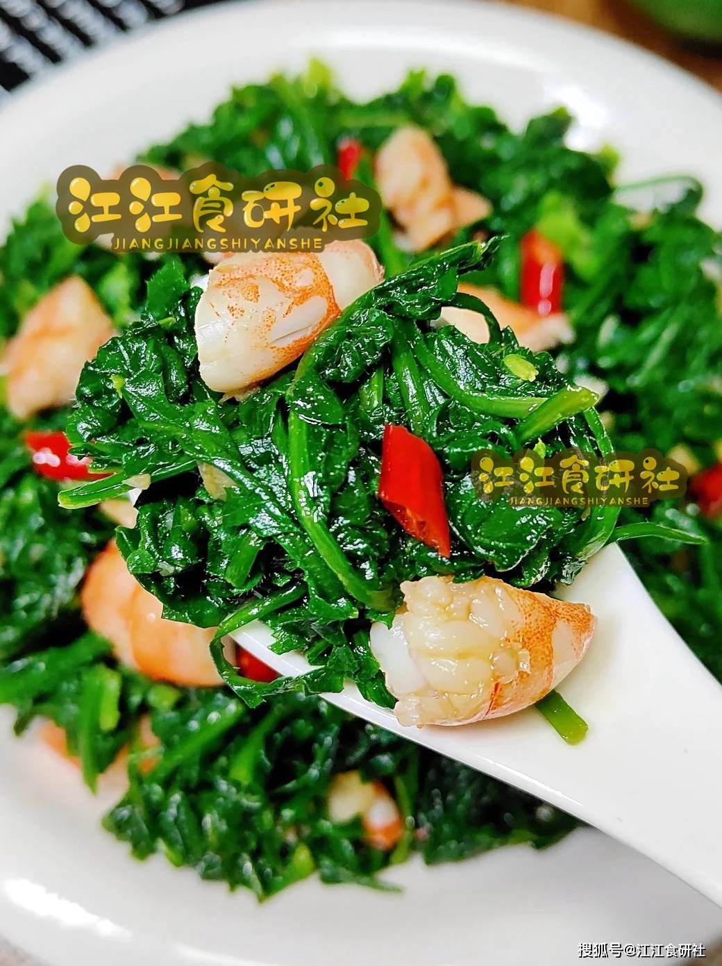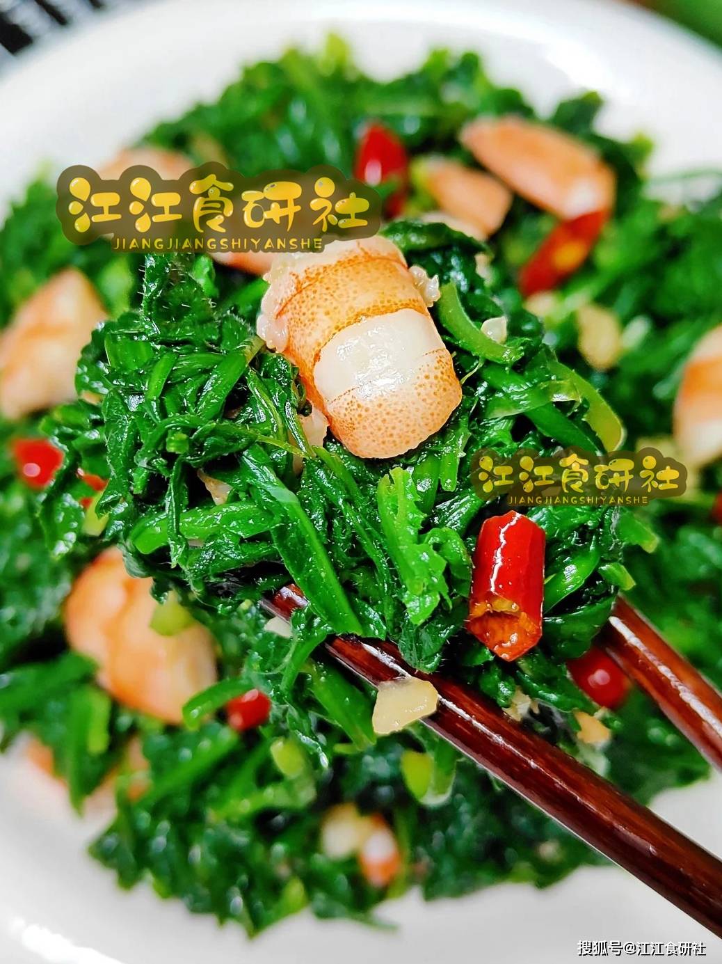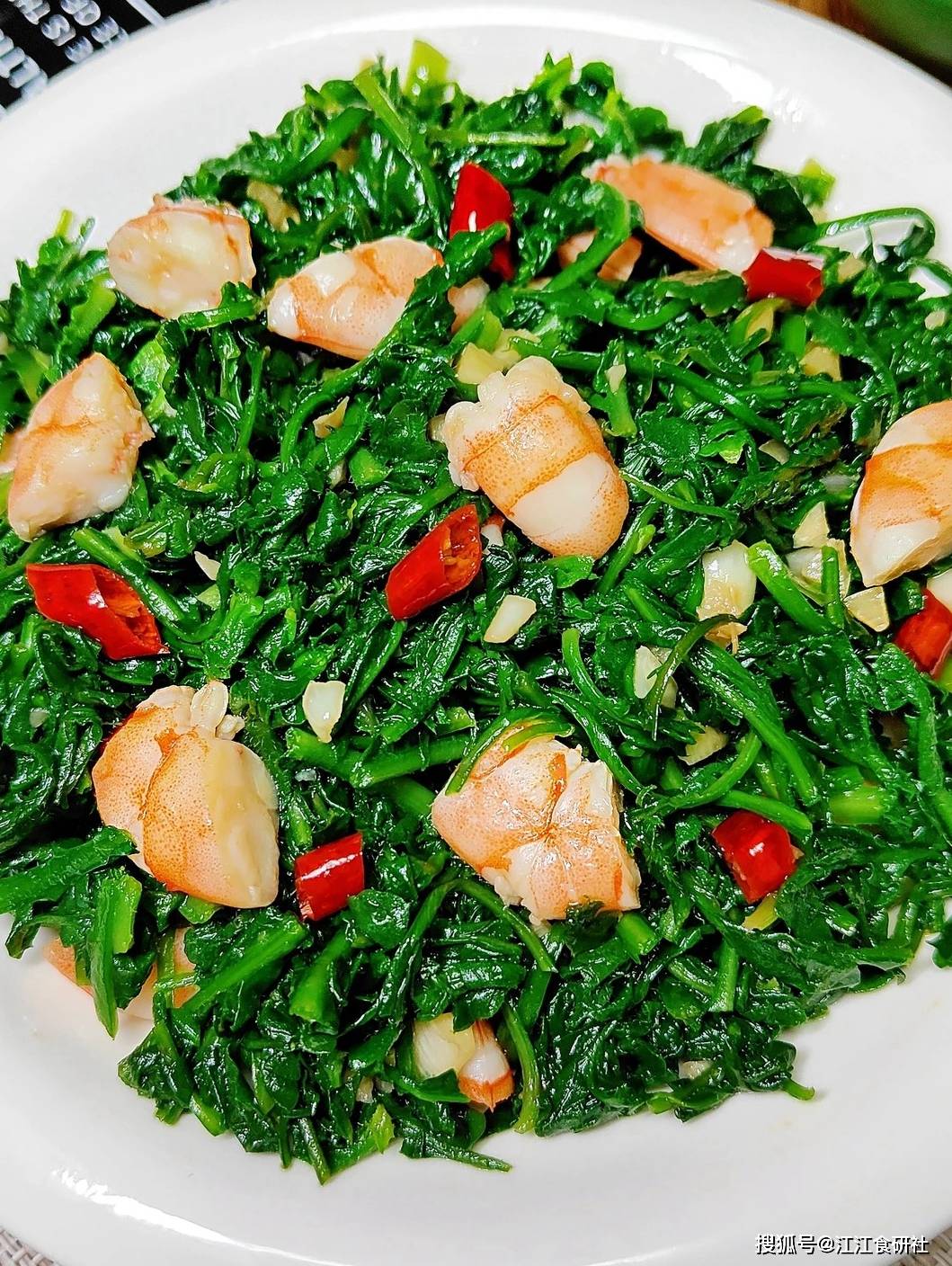 荠菜拌虾仁。
