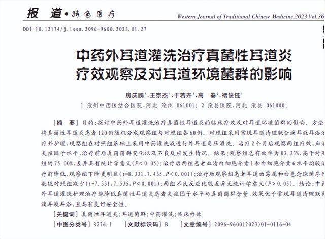 [1]房庆鹏.中药外耳道灌洗治疗真菌性耳道炎 疗效观察及对耳道环境菌群的影响,2023-01.15