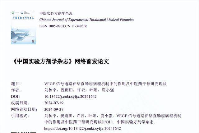 [1]刘秋宁,祝雨田,许云,等.VEGF信号通路在结直肠癌病理机制中的作用及中医药干预研究现状[J/OL].中国实验方剂学杂志,1-11[2024-10-03].