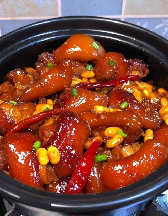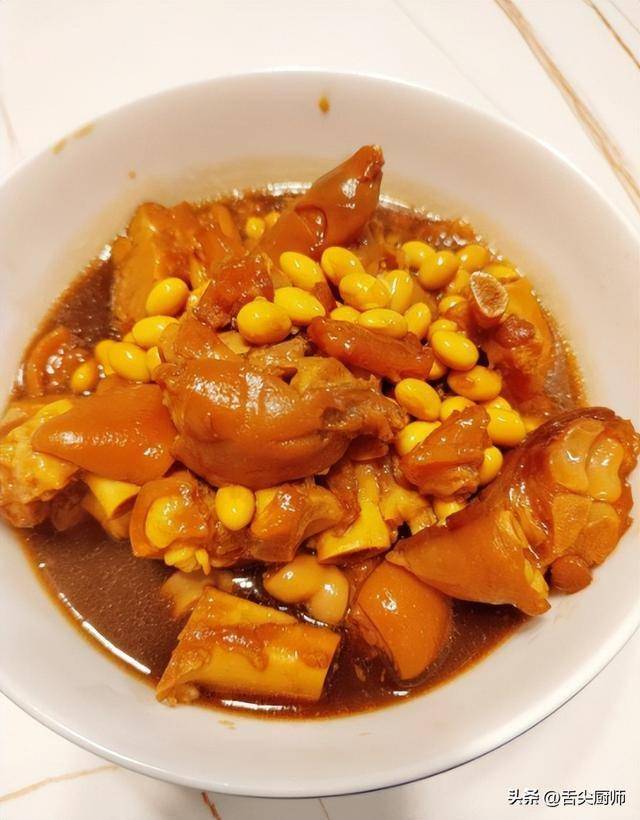 (3) 炖煮时用小火,能让猪蹄和黄豆更入味。